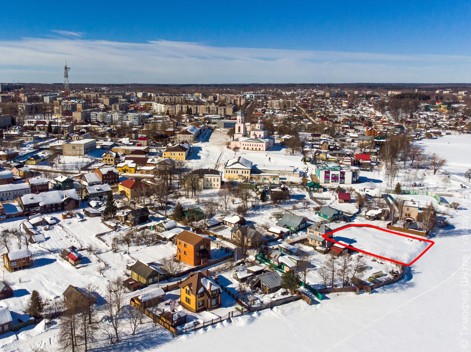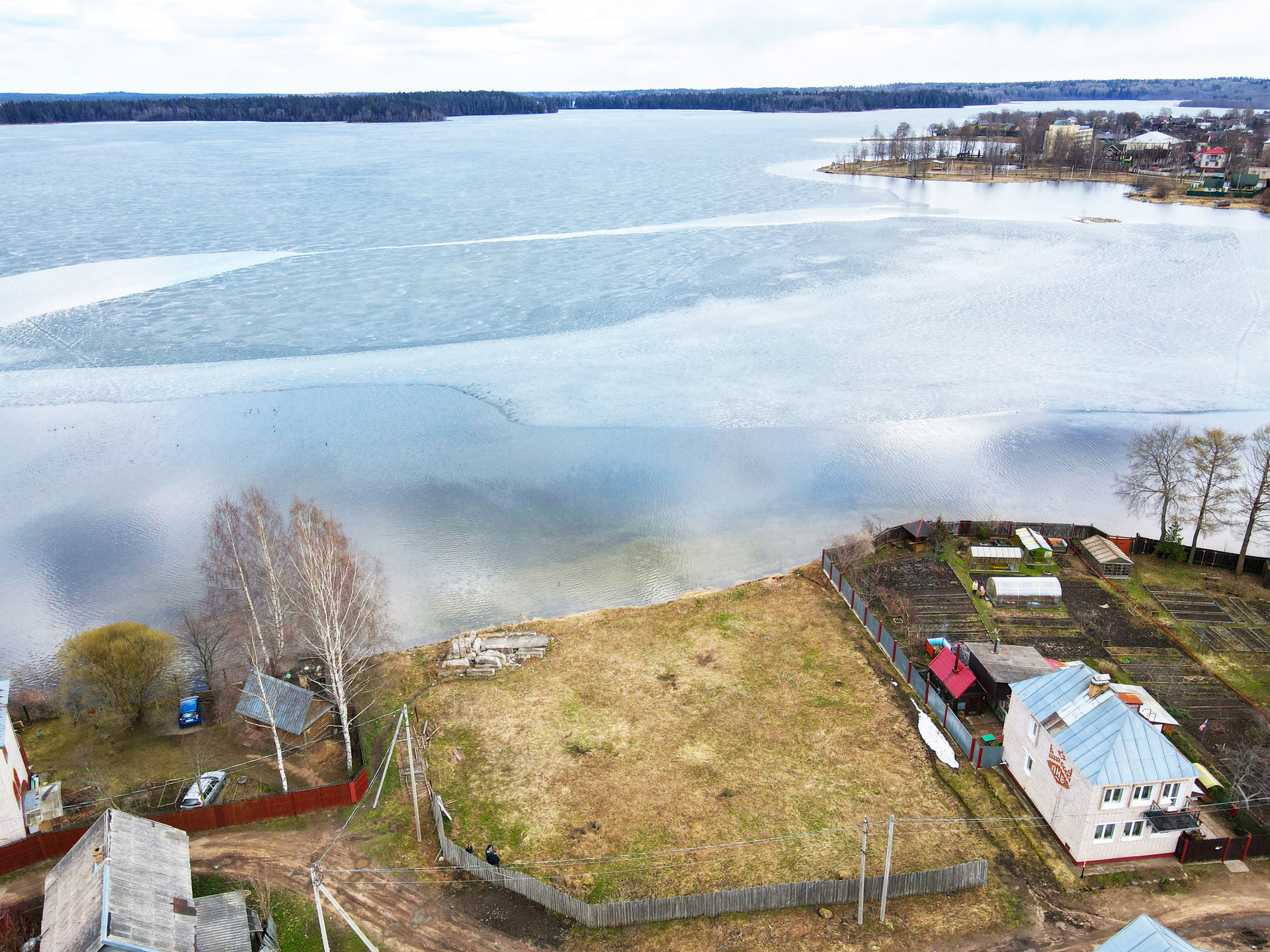 - С участка открывается роскошный вид на озеро и Иверский монастырь.