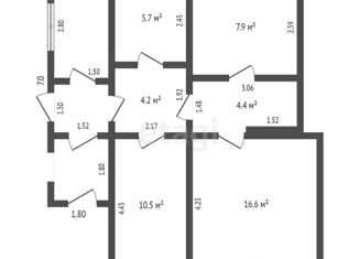 Общая площадь: 52.3 м2
