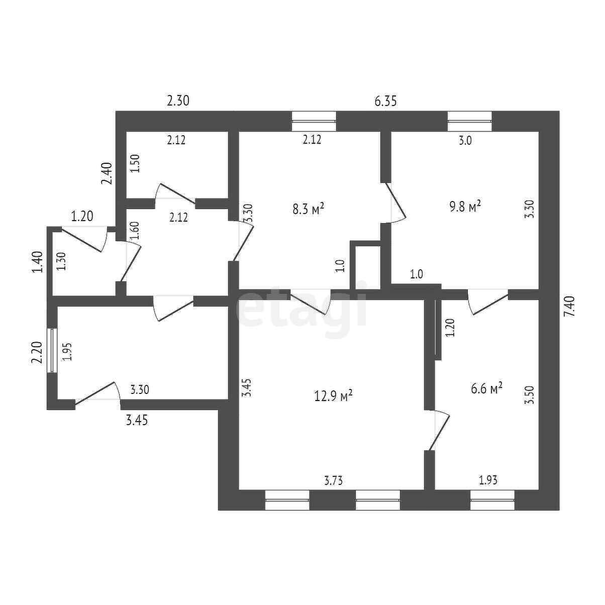 Общая площадь 37.8 м2
