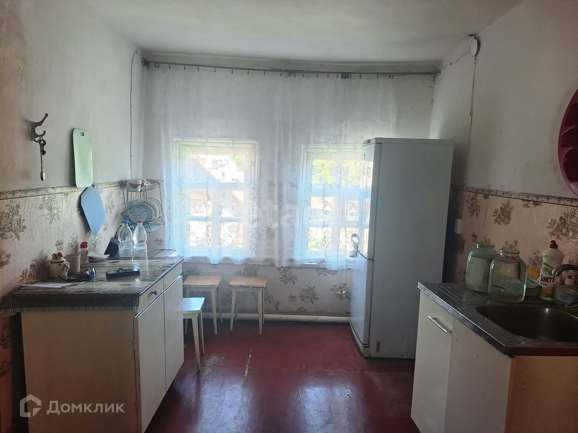 Материал дома - бревно, обложен кирпичом. Материал крыши – шифер. Дом общей площадью 59,9 кв.м. В доме четыре просторные комнаты: зал-14,4 кв.м.,две спальни – 10,9 кв.м. и 9 кв.м., обеденная зона-12,3 кв.м. Совмещенный сан.узел. Отопление – газовый котёл. Водонагреватель – электрический бойлер. Водоснабжение – центральное. Канализация – индивидуальная, септик.