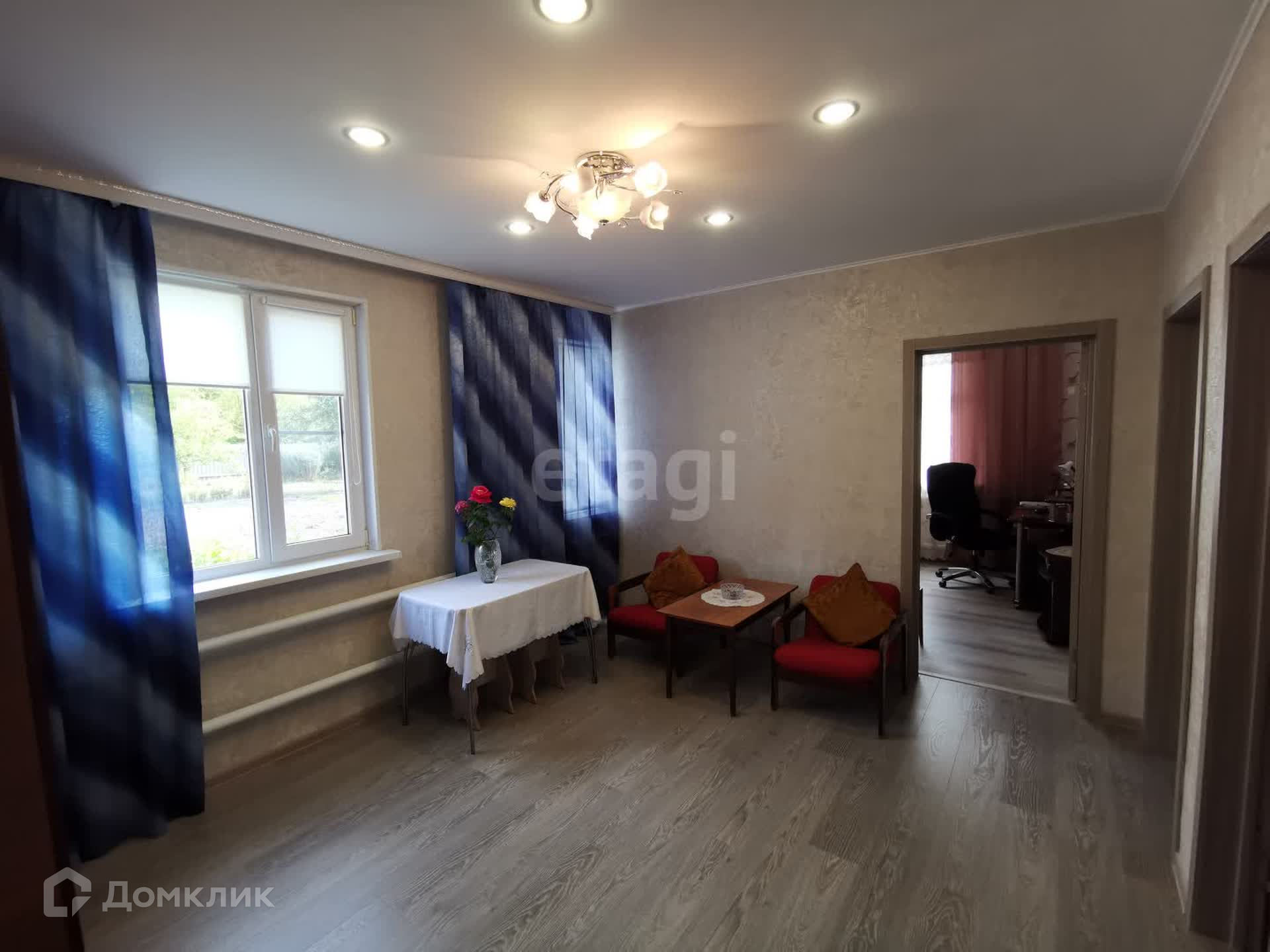 Дом состоит из гостиной, зала, 2 -х спален, санузла, кухни. Окна все ПВХ. Потолок натяжной. На пол постелен ламинат. Отопление индивидуальное – напольный котел, водонагреватель – газовая колонка.
