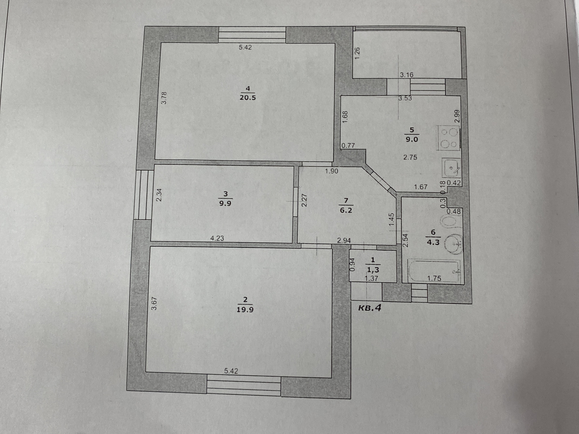 Жилая площадь 50.4 м2
