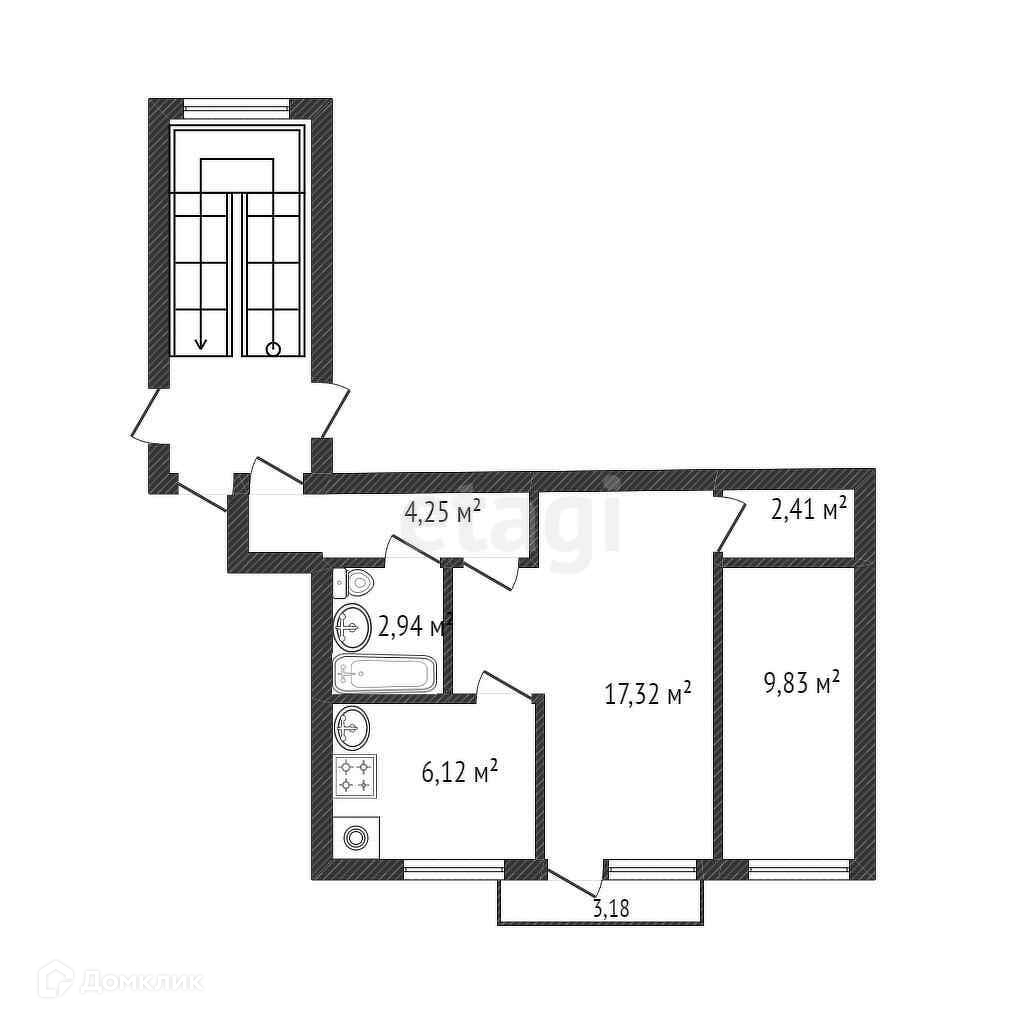 Общая площадь 42.9 м2