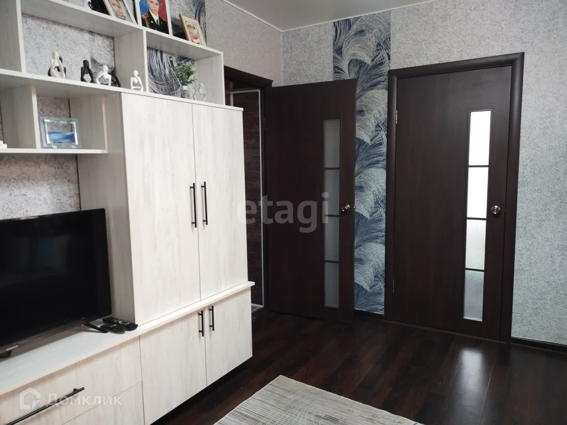 Общая площадь 43,1 кв.м. ( по факту больше 60 кв.м), три спальни (одна изолирована, в две спальни вход из зала), кухня 8 кв.м., просторный совмещенный санузел (в кафеле).