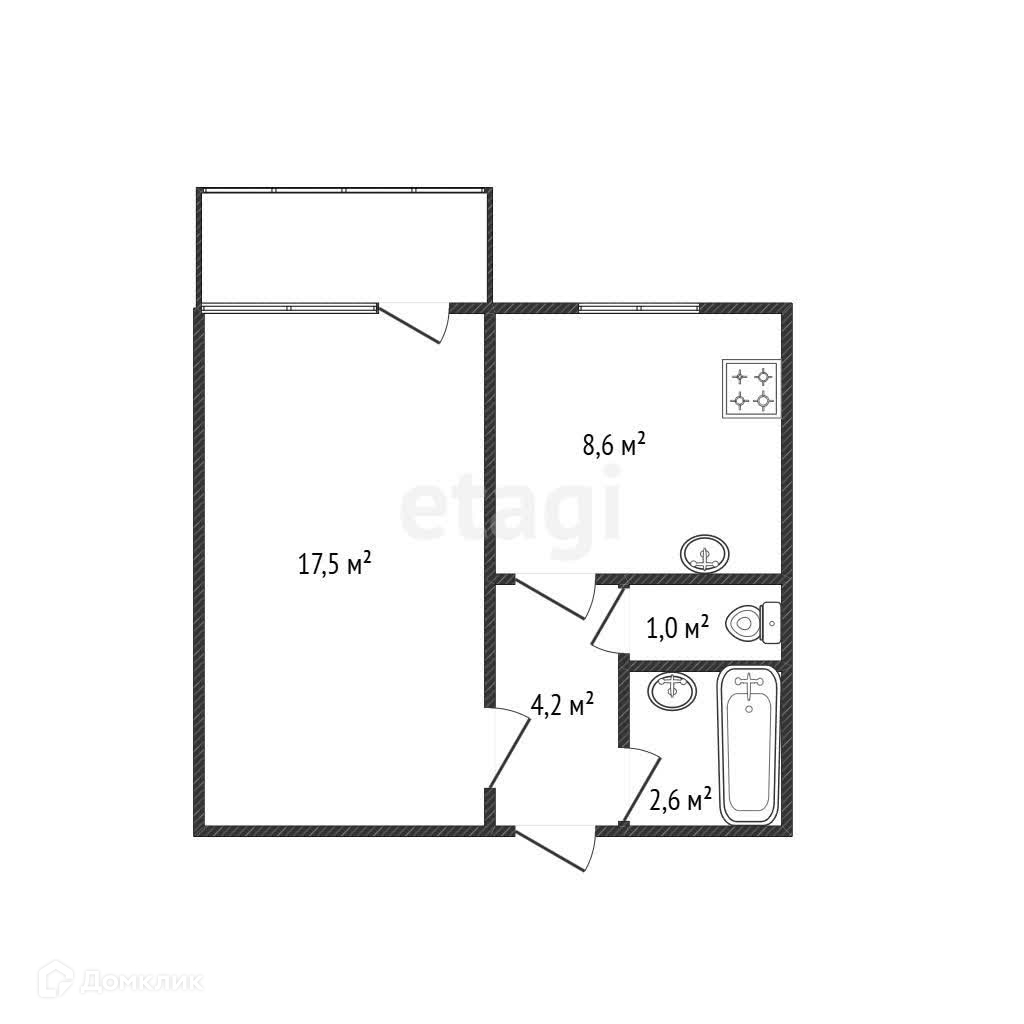 Общая площадь 33.9 м2