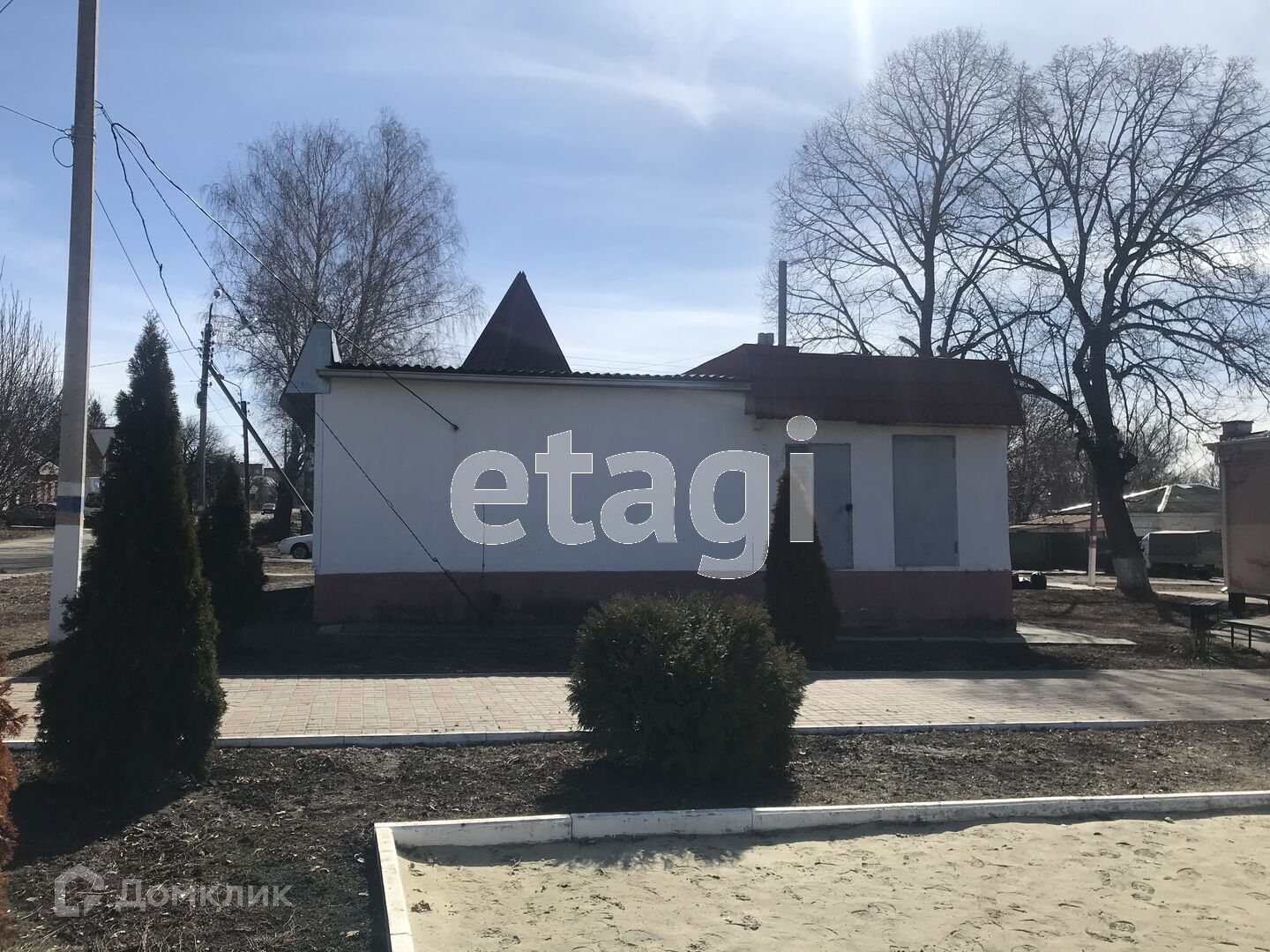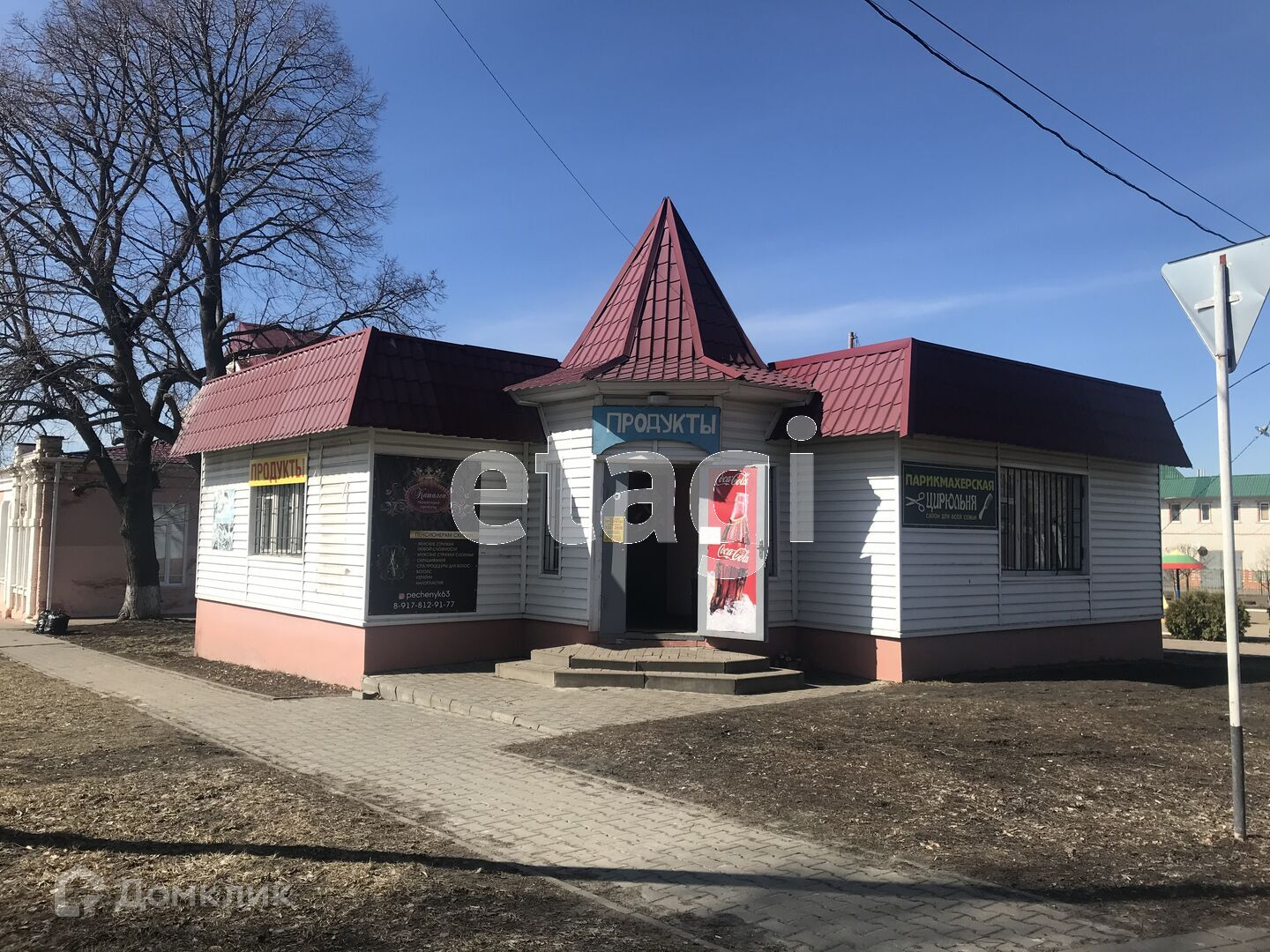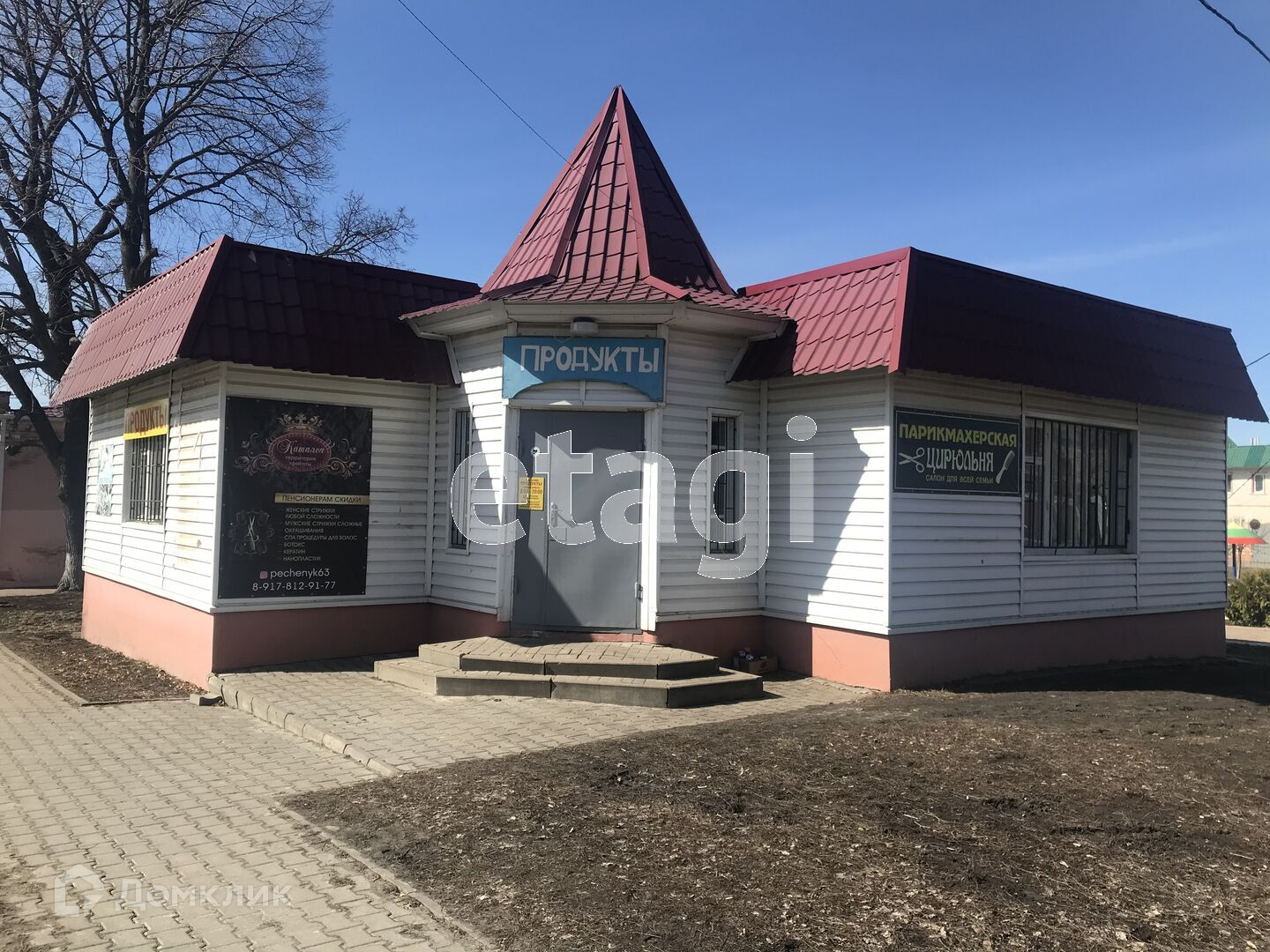 Общая площадь здания составляет 78,2 кв. м. В здании расположены: просторный торговый зал, площадью 36,1 кв. м; малый зал, площадью 19,8 кв. м, который можно использовать под офисное помещение, два подсобных помещения, котельная, санузел.