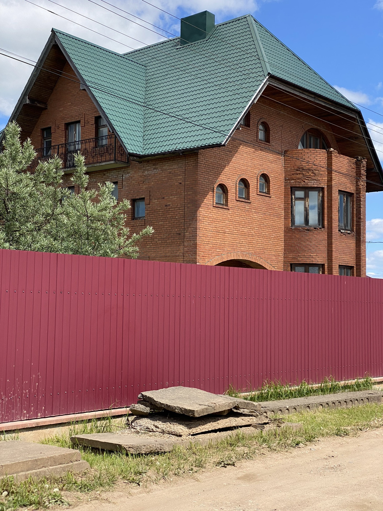 Участок огорожен забором из металлопрофиля.