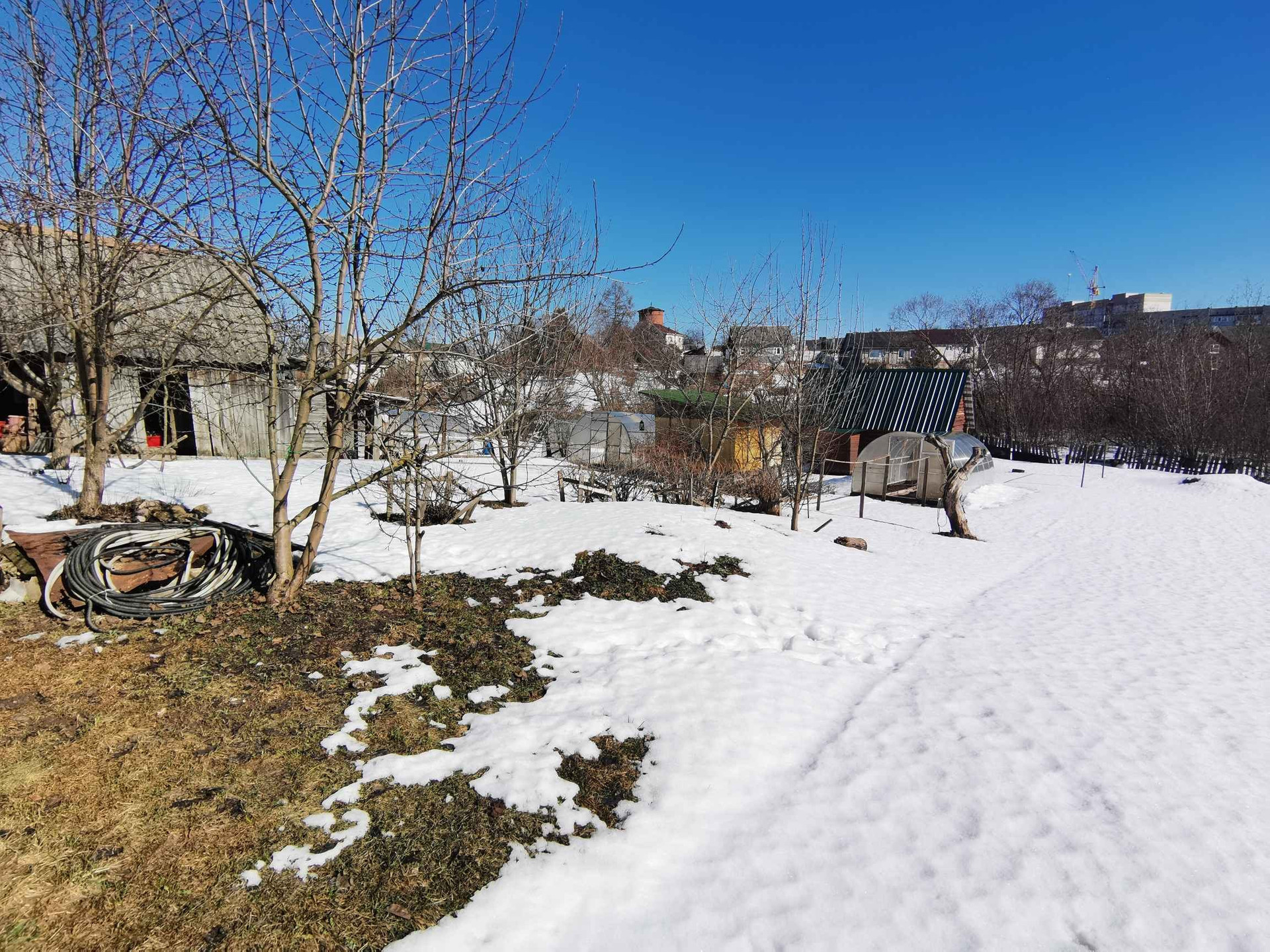 Учаток 12 соток разработанный, две теплицы, баня, гараж.