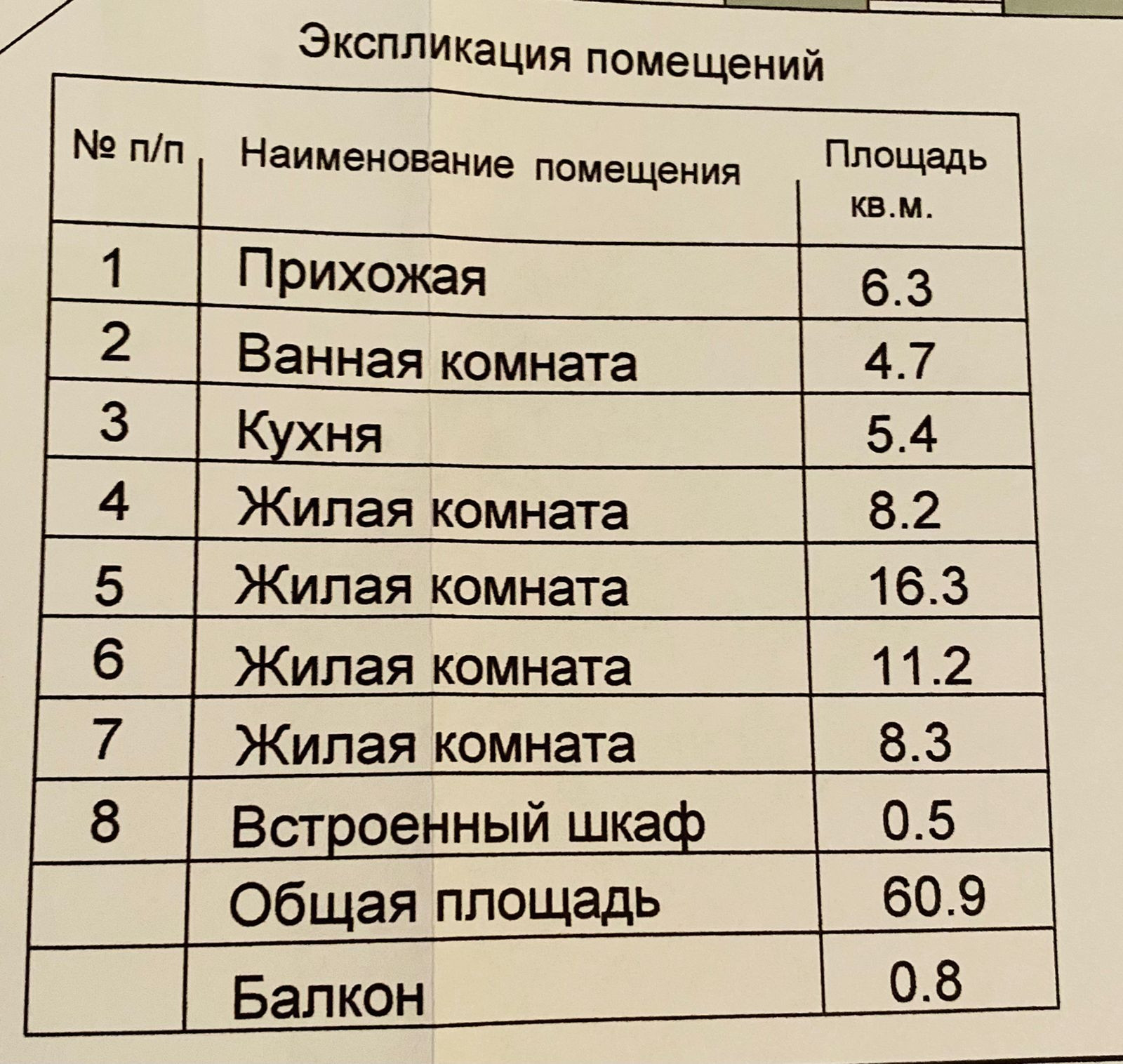 Общая площадь 60.9 м2