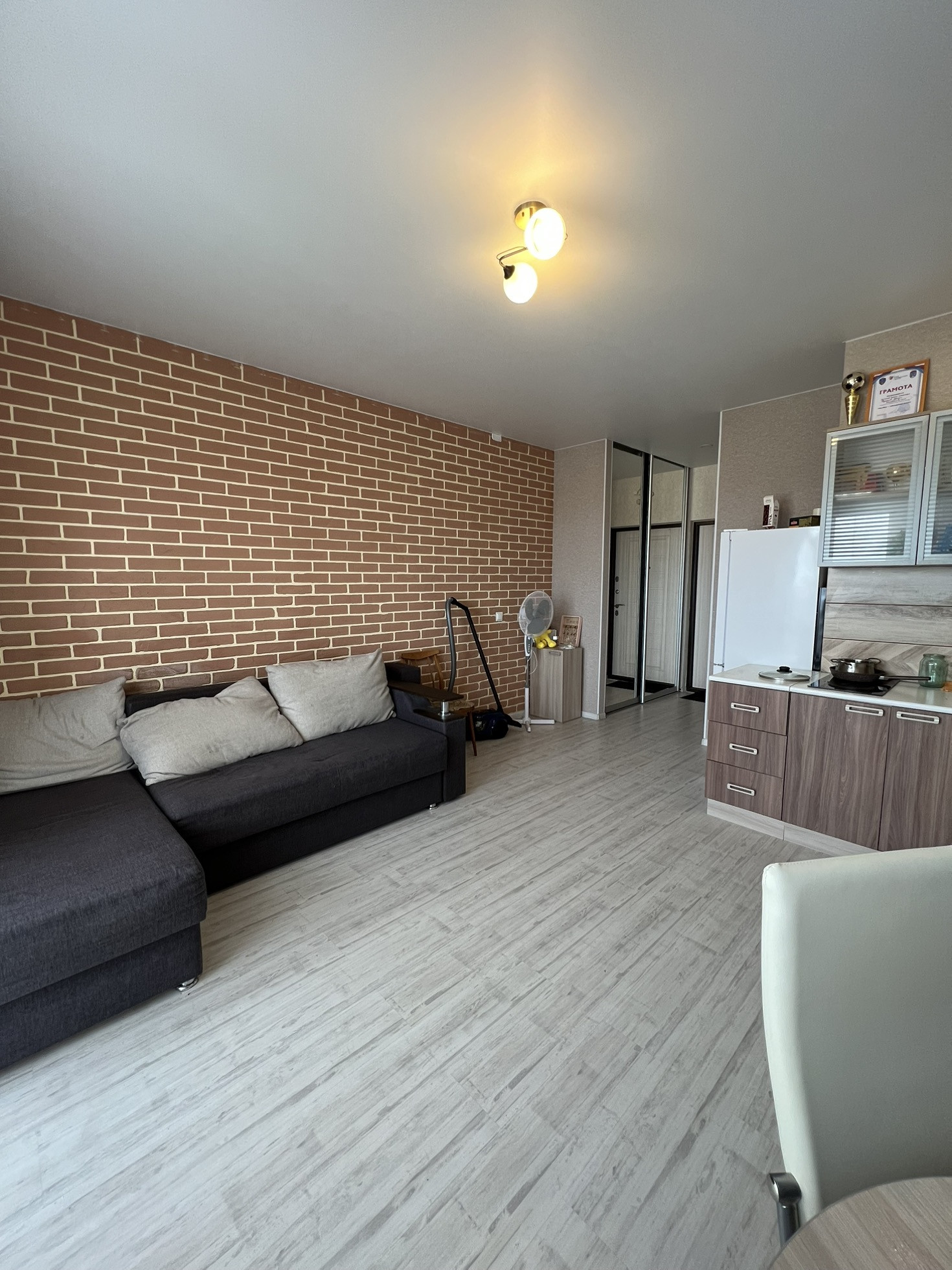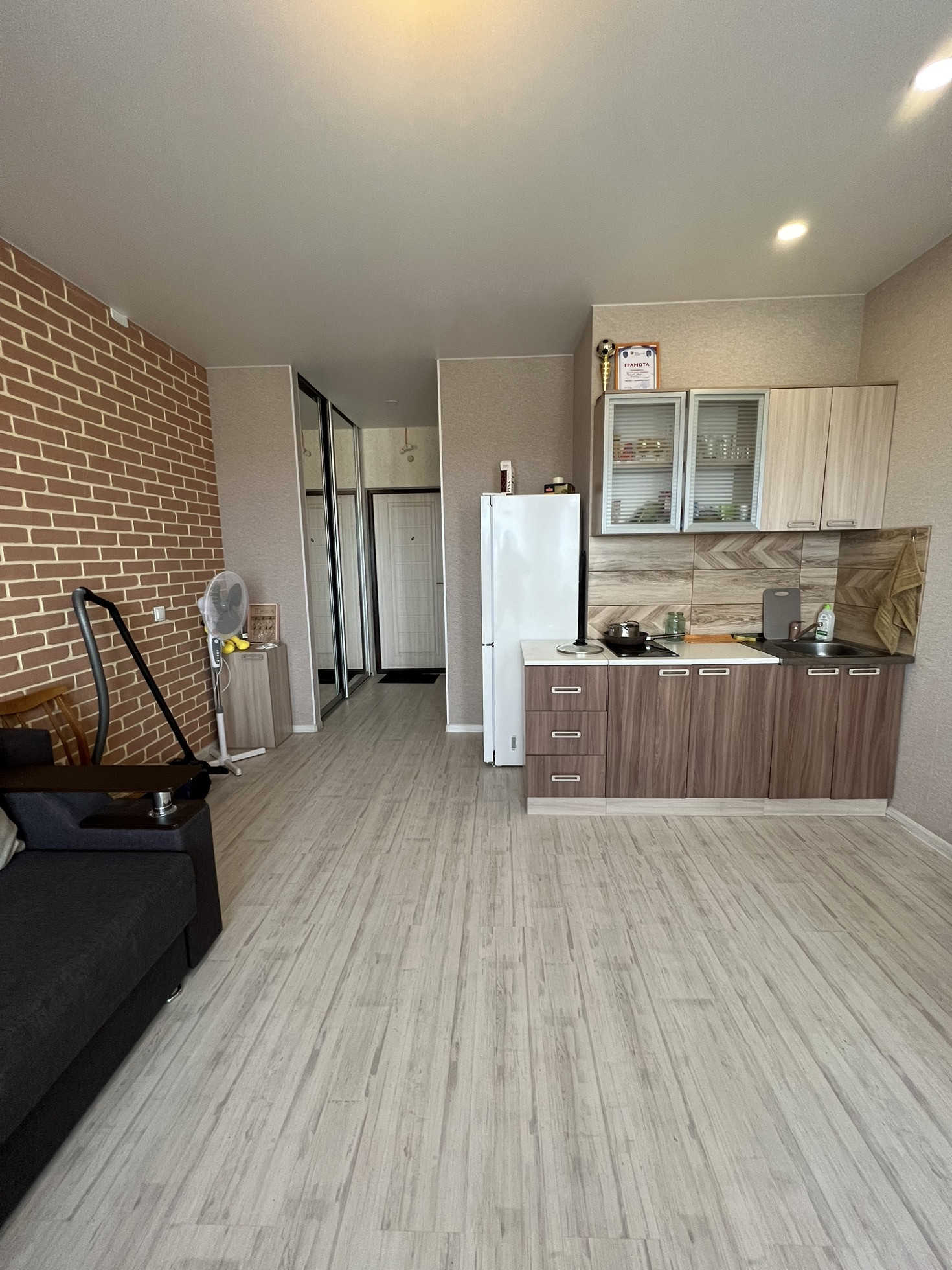 Продаётся квартира-студия в отличном состоянии, на полу ламинат, натяжные потолки, ванна в кафеле. Хорошая входная дверь.
