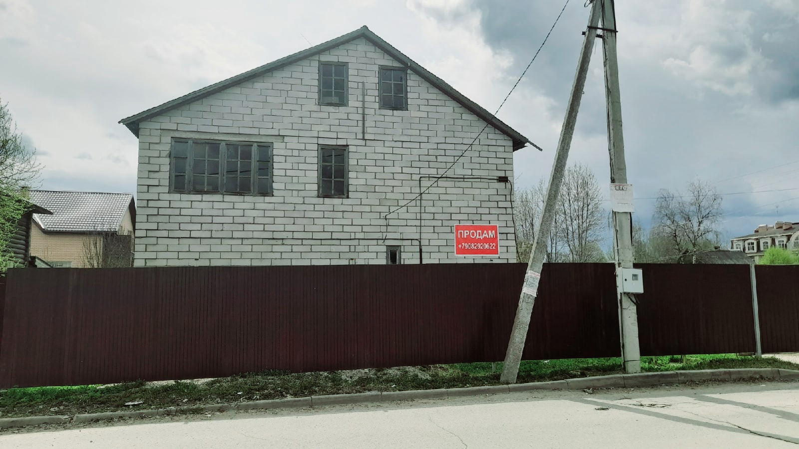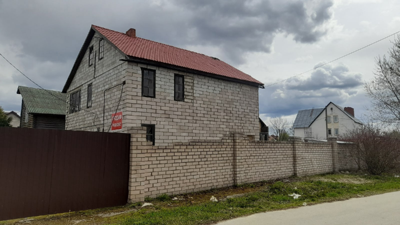 Стены - пенобетонные блоки, перегородки- пенобетон, перекрытия - железобетонные плиты, кровля - метало-пластиковая черепица по деревянным обрешеткам.