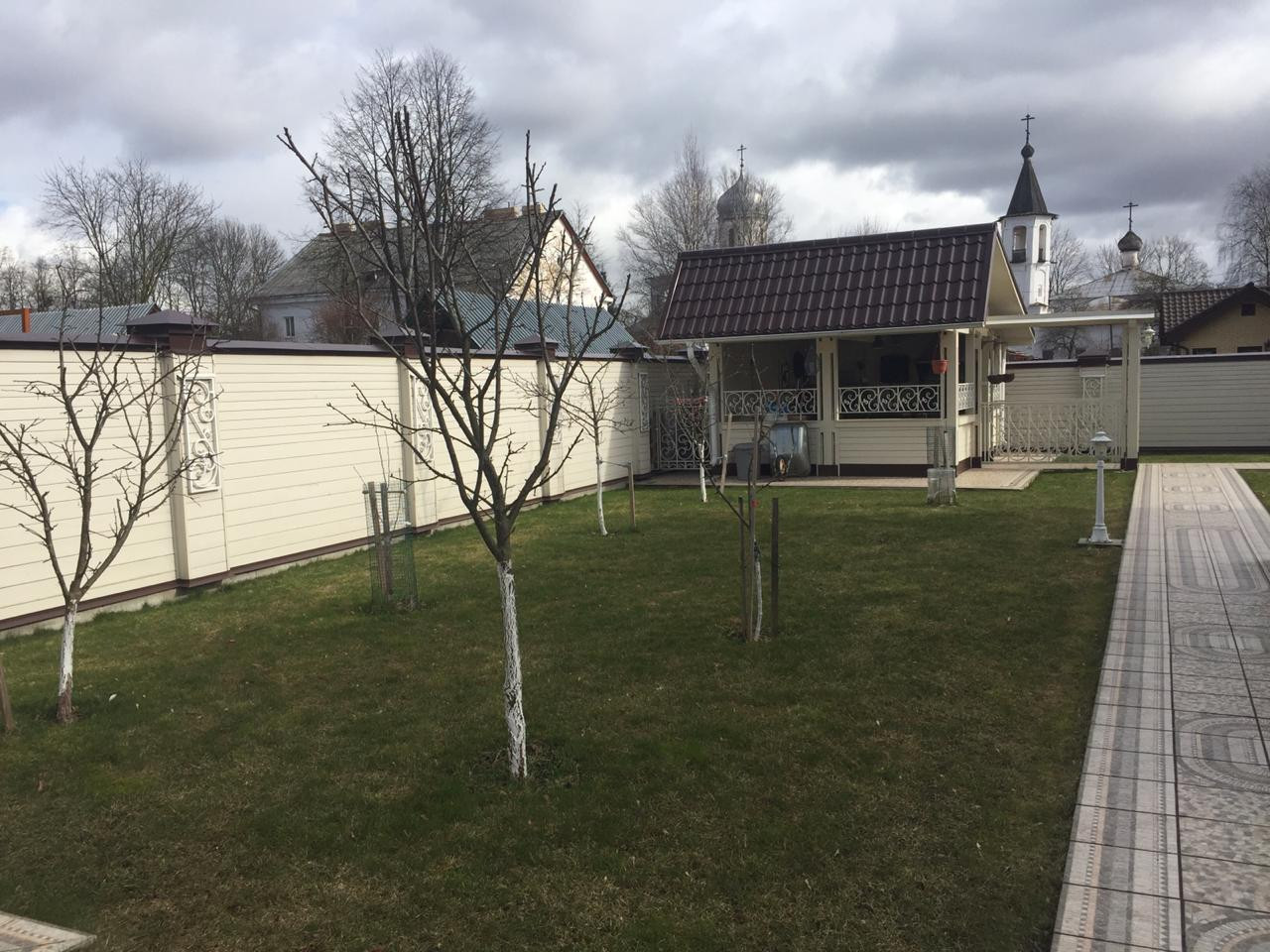 - зеленые насаждения: яблони, груши, декоративные растения.