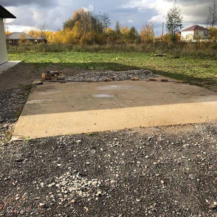 Перед домом залита площадка под террасу и площадка под авто (можно делать навес или полноценный гараж).