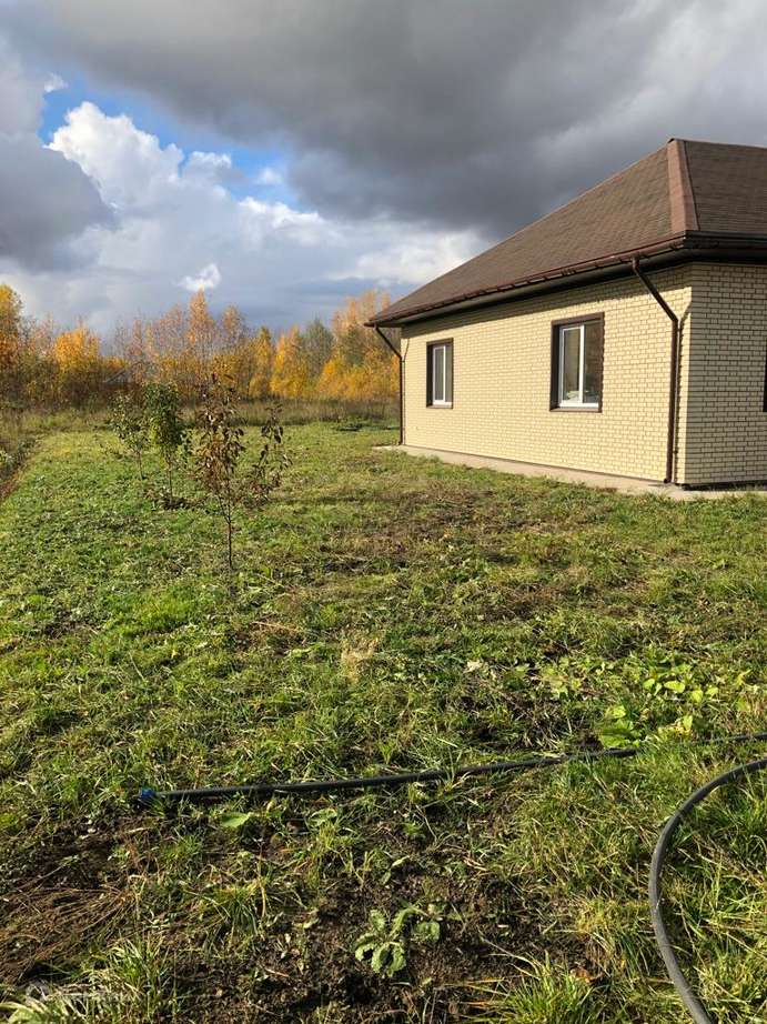 Летом завезли хорошую плодородную землю 50м3, покрыли верхним слоем. Можно сажать газон. Посажены 3 яблони, черешня и вишня и три небольшие грядки.
