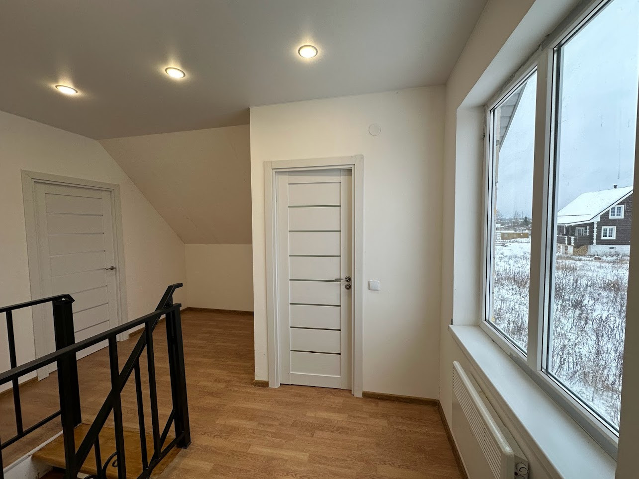 Предлагается к продаже АБСОЛЮТНО НОВЫЙ, 2023 года постройки, небольшой, но очень уютный и функциональный двухэтажный дом 112 кв м в мкрне Кречевицы на ул. Генерала Ковалевского, д.30 (9 км от Великого Новгорода):