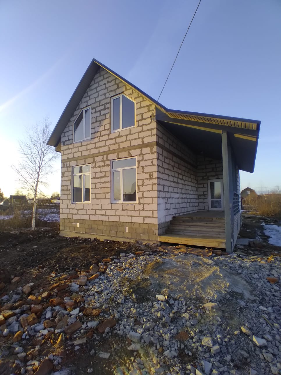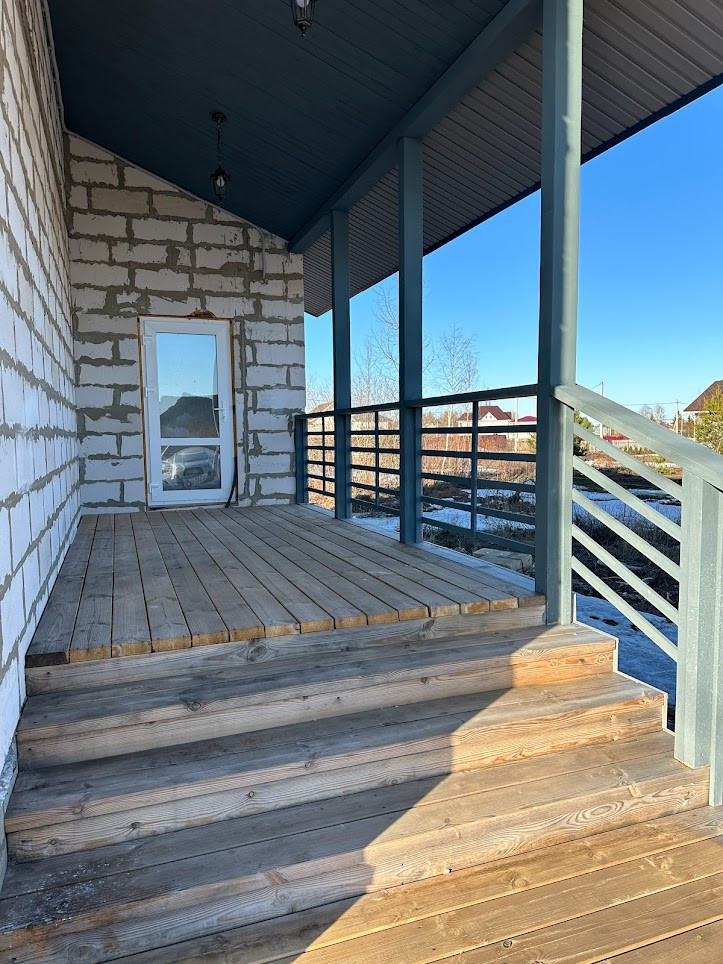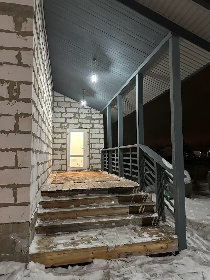 сам дом размером 96 кв м + 16 кв м просторная терраса-крыльцо под общей крышей (в ЕГРН зарегистрирован как 112 кв м);