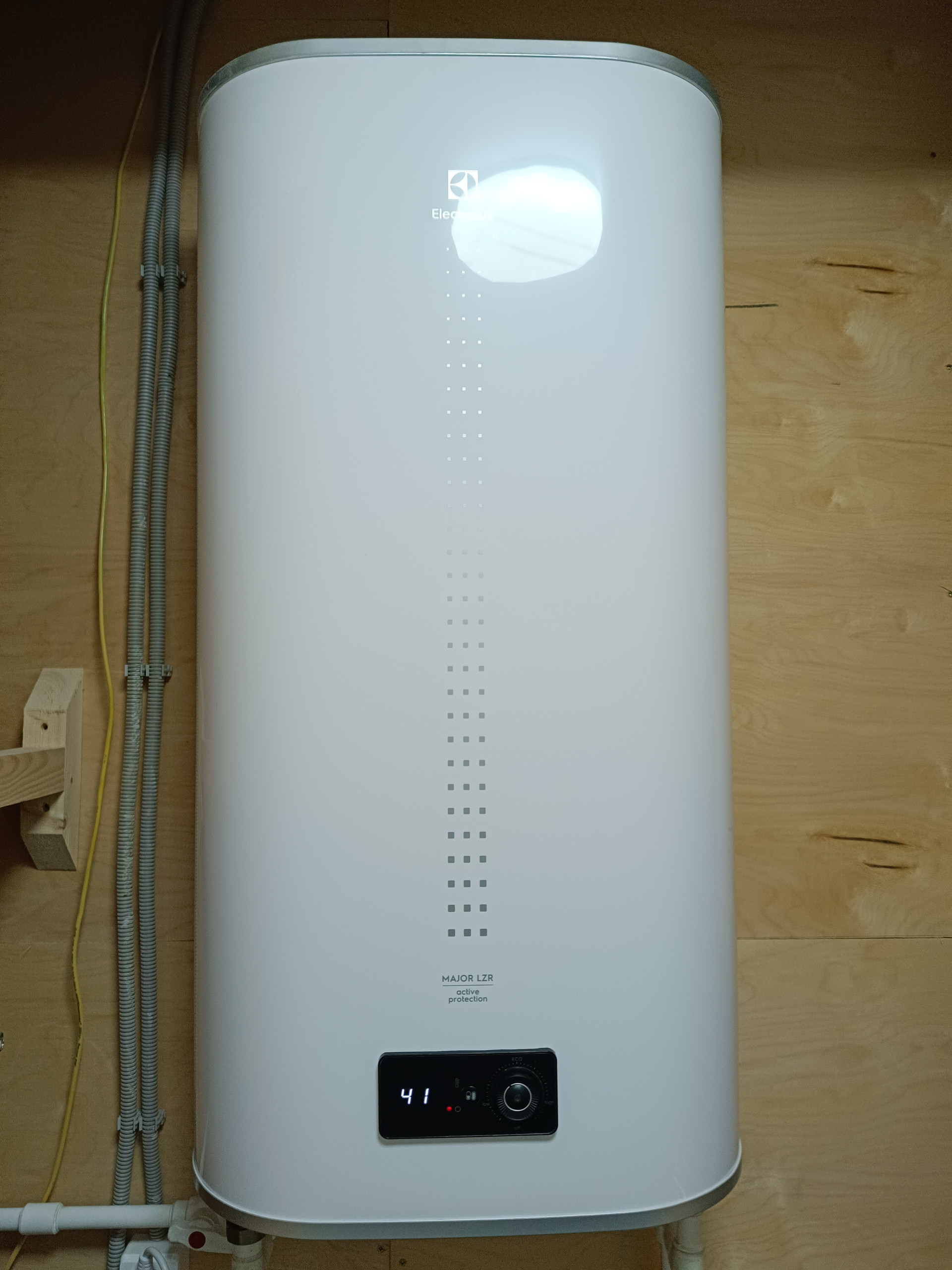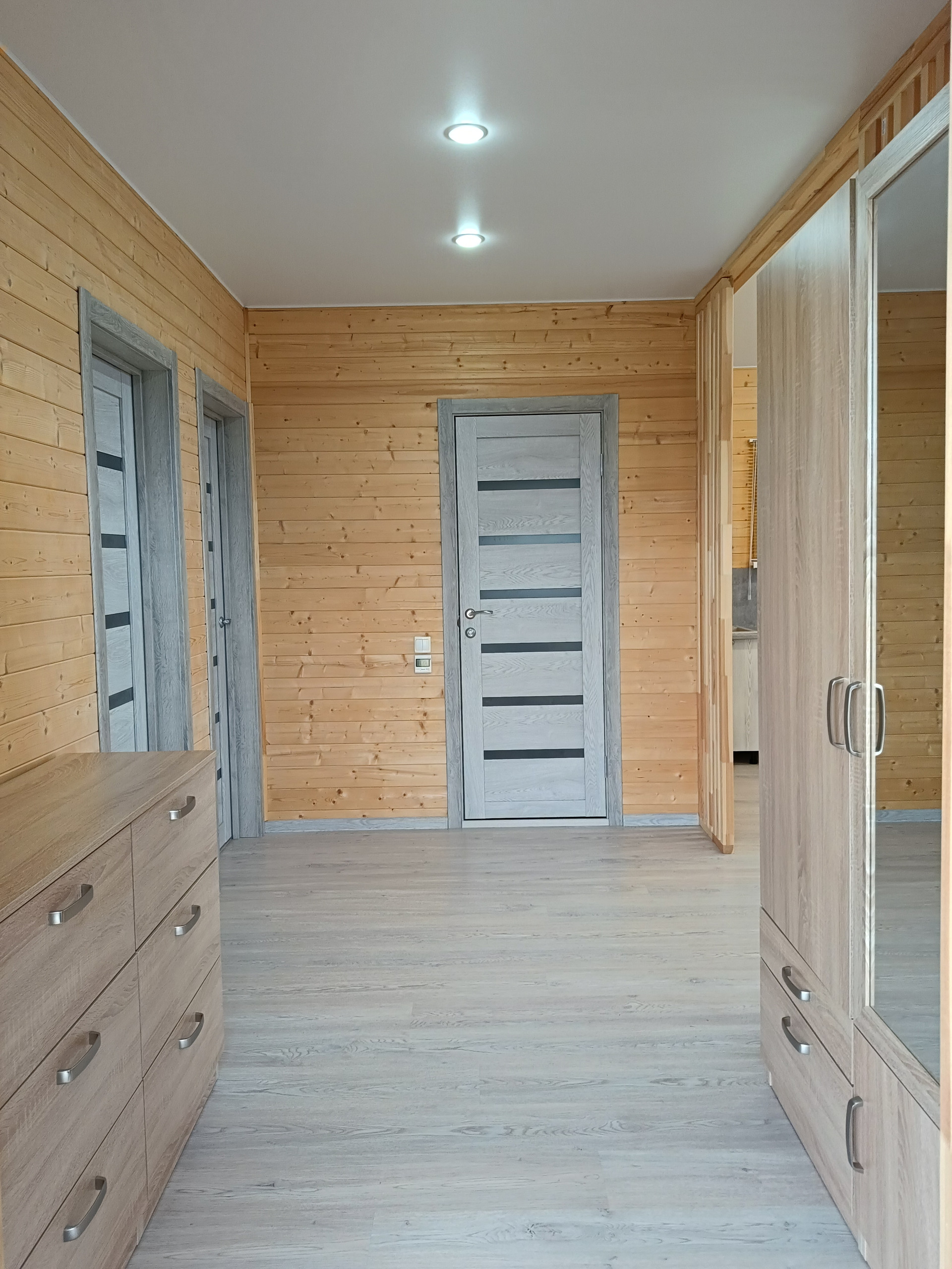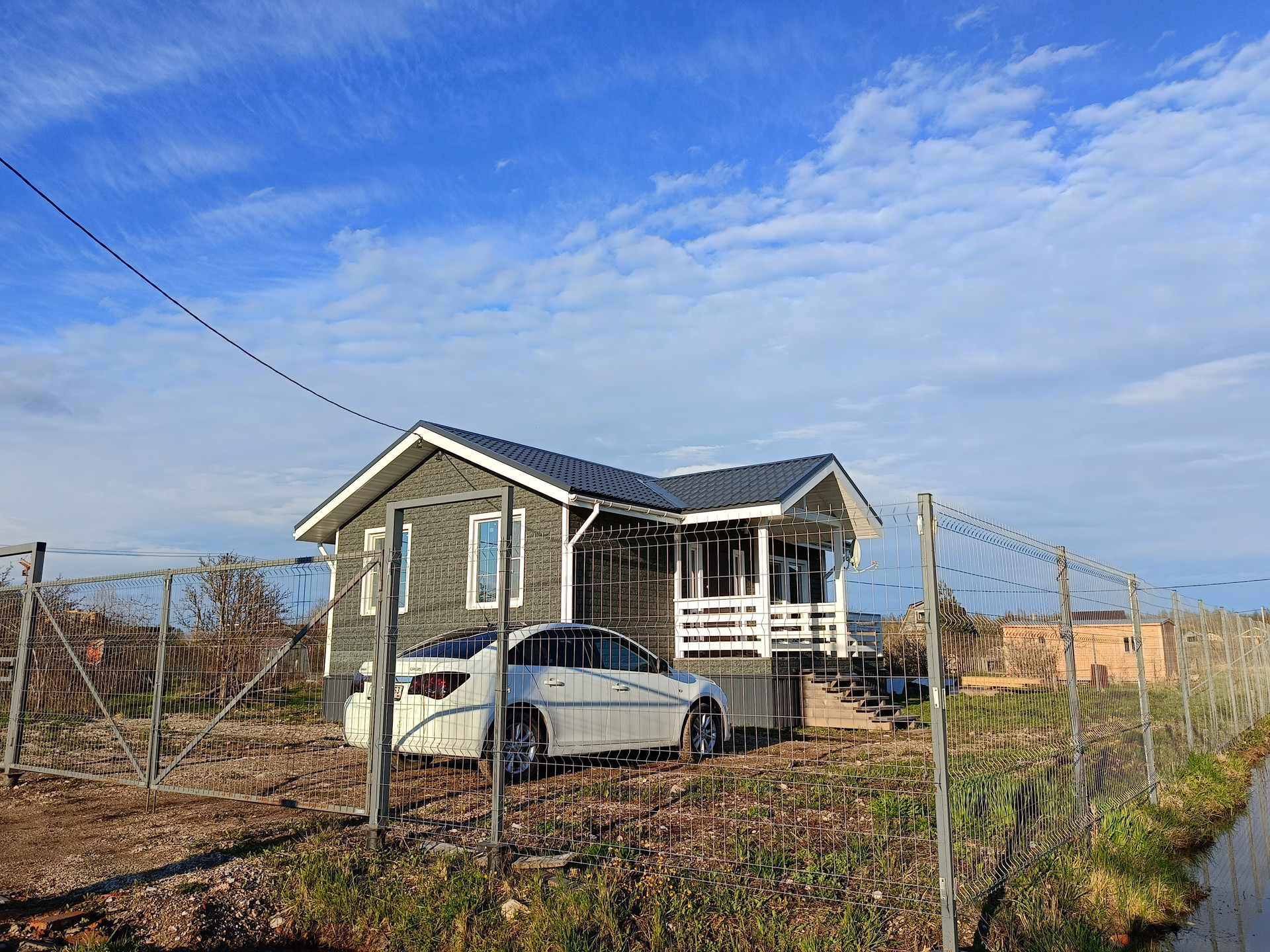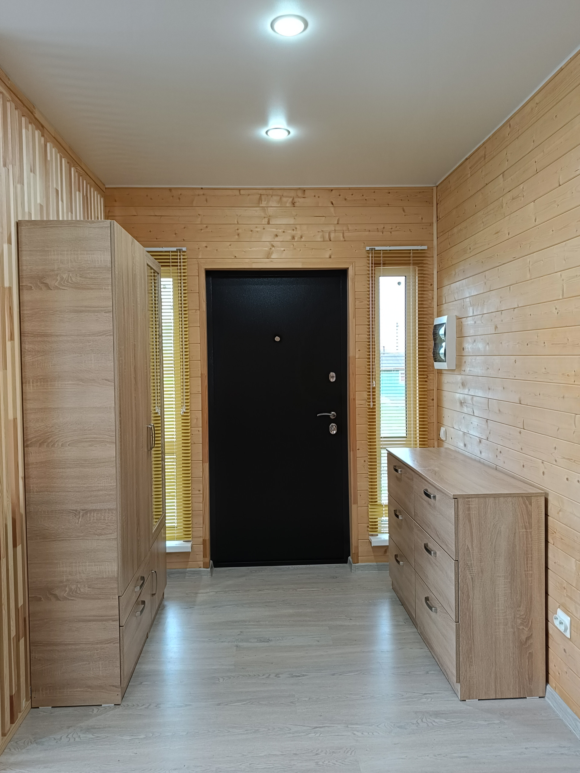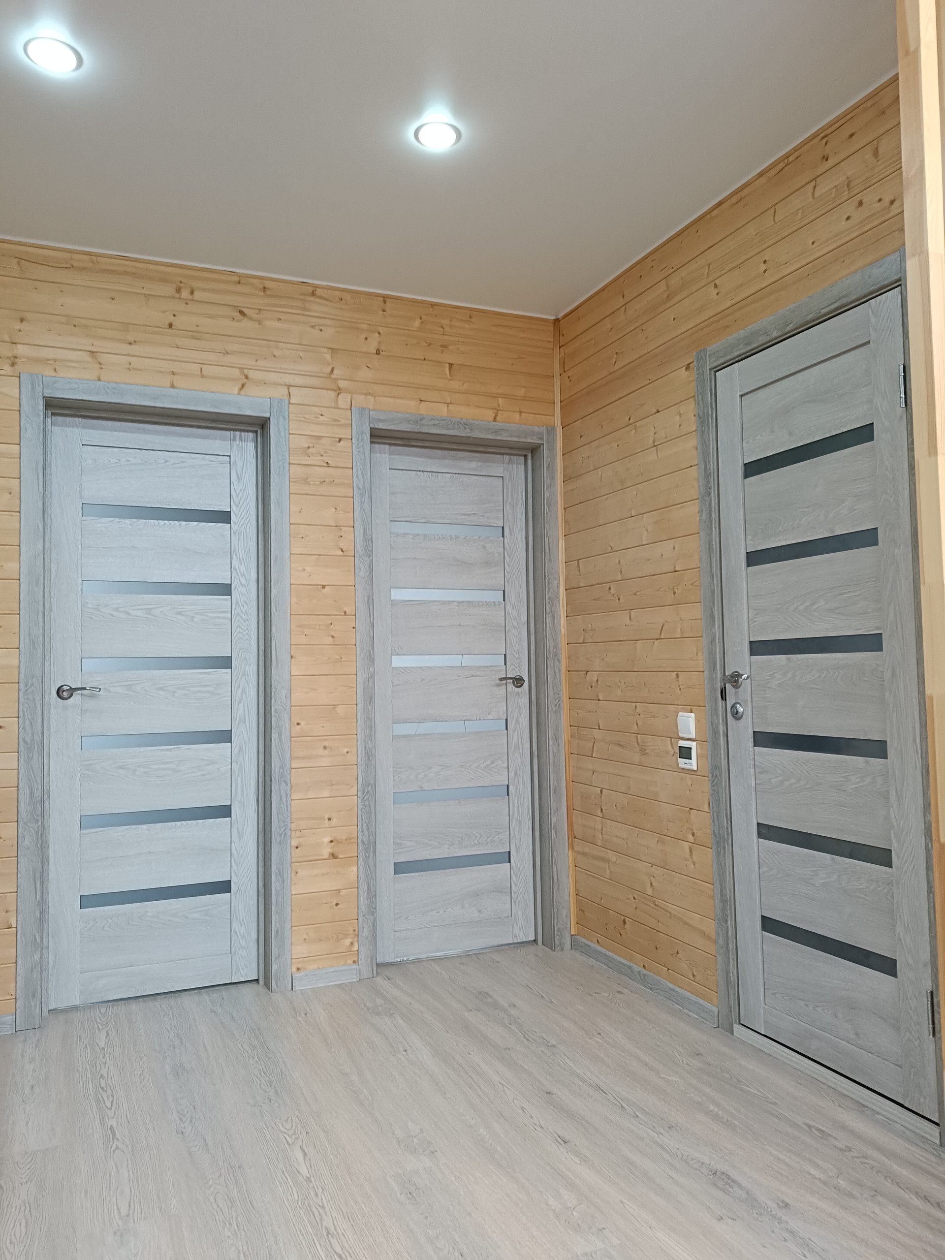 Двухкамерные энергосберегающие стеклопакеты, межкомнатные двери, полная разводка электричества, полы  сухая стяжка + ламинат, натяжные потолки с хорошим освещением, сантехника, накопительный водонагреватель Electrolux на 80 литров с высокими антикоррозийными свойствами и электронным анодом (гарантия 84 месяцев), подведена вода в дом (колодец), выведена канализация (установлена станция биологической очистки Евролос ПРО 5+), уличное освещение фасада.
