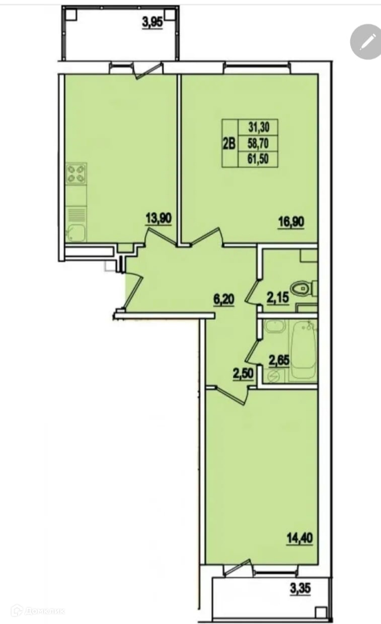 Общая площадь 61 м2