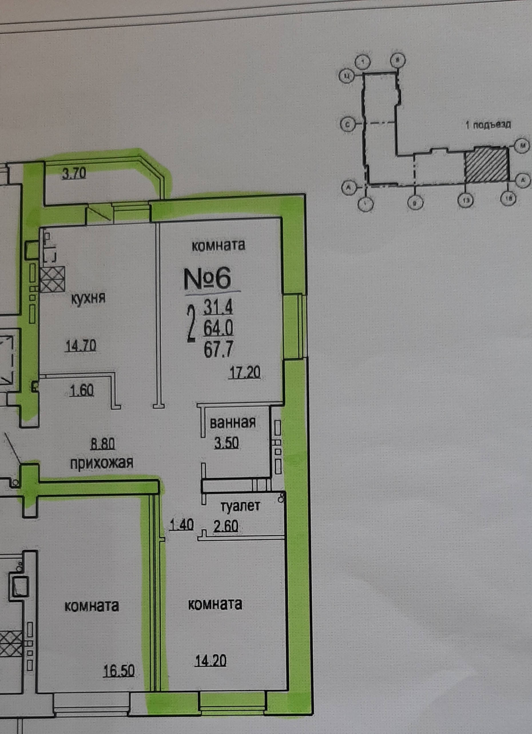 Общая площадь 68 м2