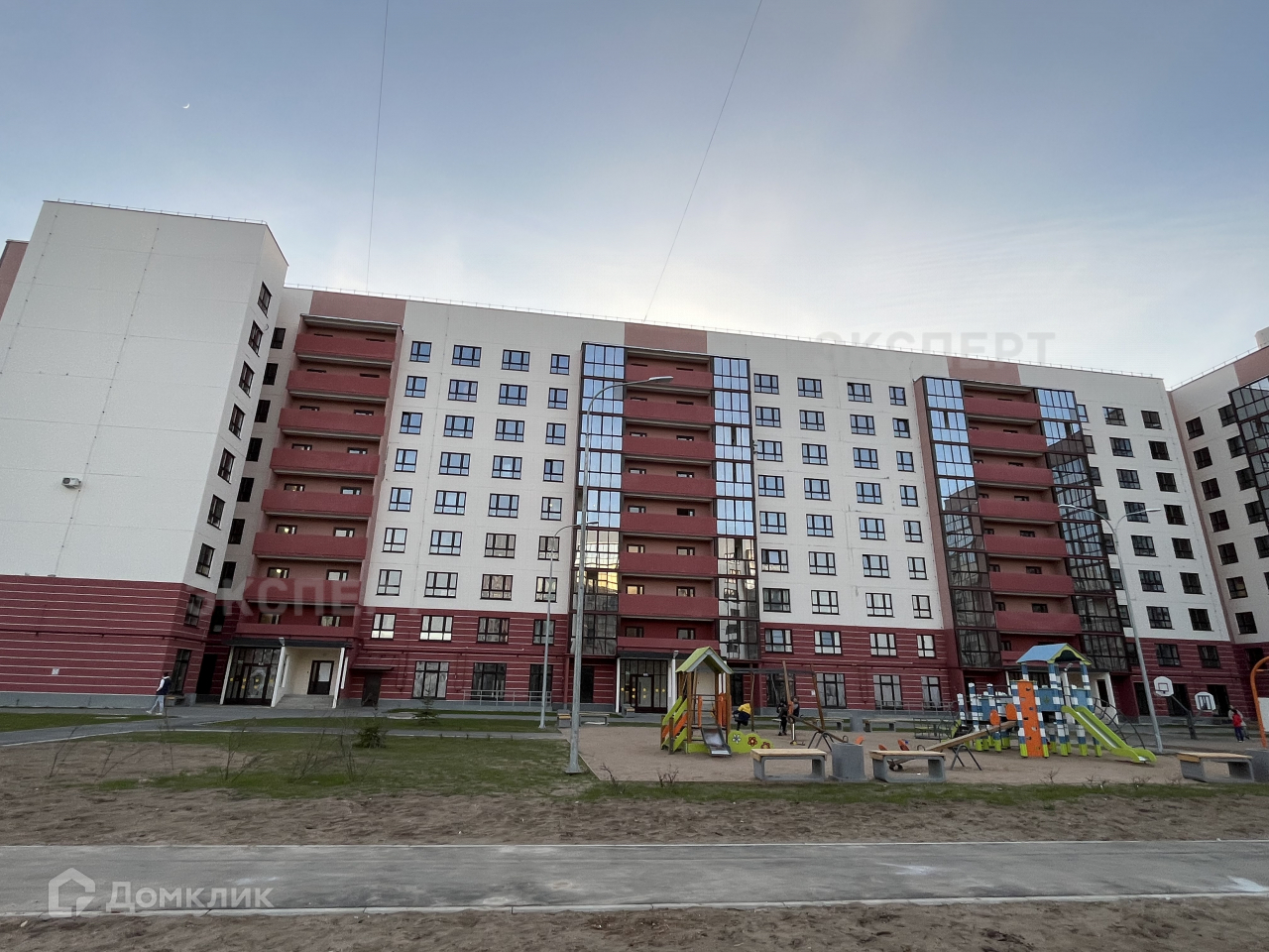 Дом совершенно новый, построен в 2021 году, сдан. Есть грузовой лифт. Во дворе детская площадка, место для парковки машин.