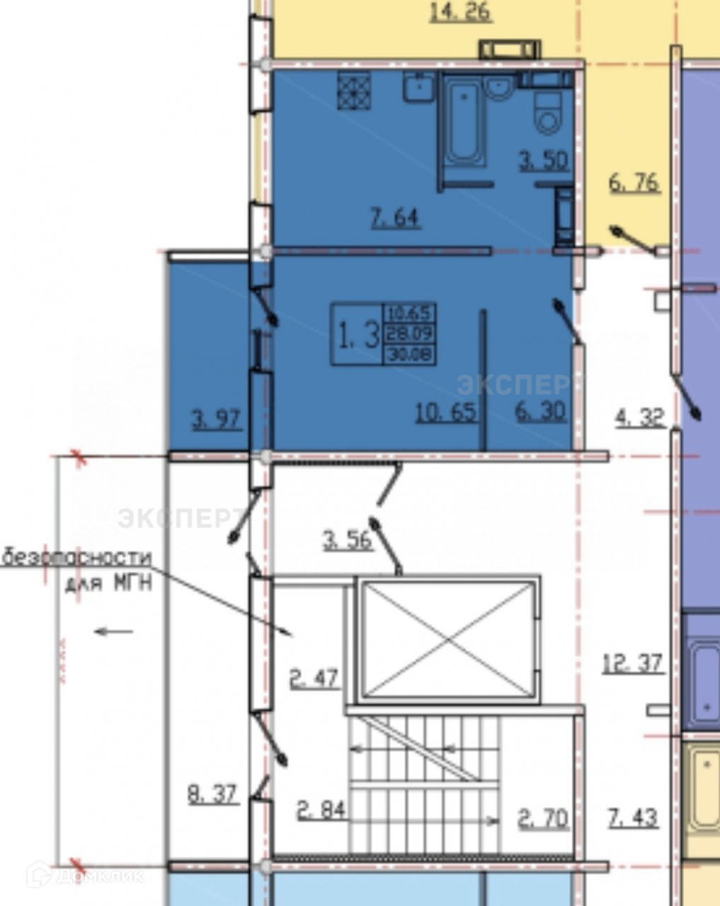 Высота потолков 2.6 м