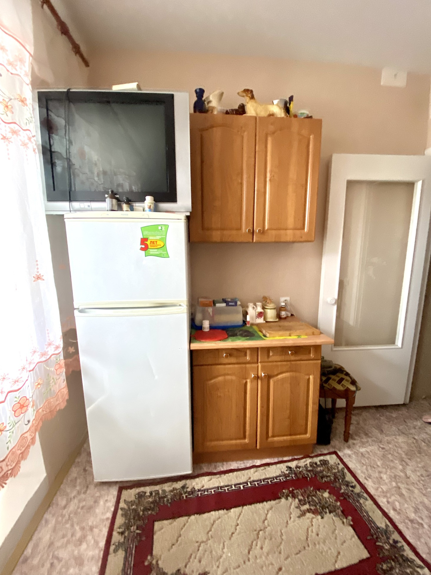 Так же остаётся стиральная машина, ТВ в комнате и на кухне.