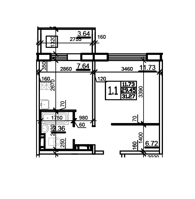 Балкон, лоджия 1 балкон