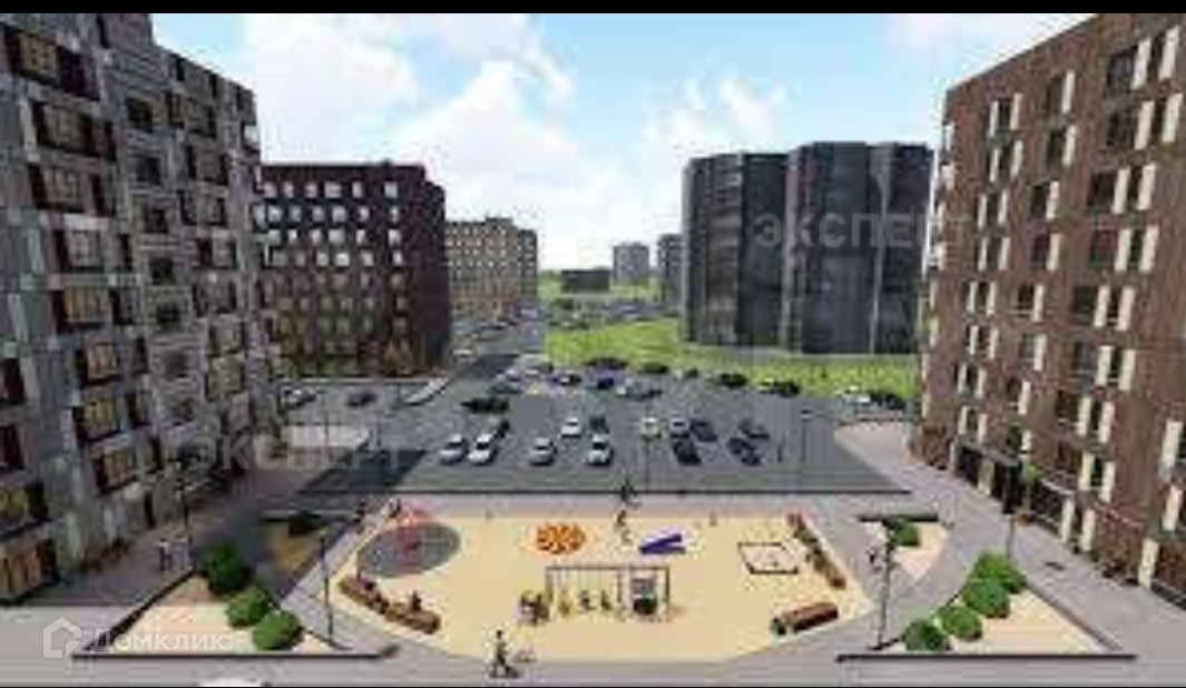 Во дворе – детские и спортивные площадки, территория комплекса за шлагбаумом, благоустроенные дорожки, просторная парковка.