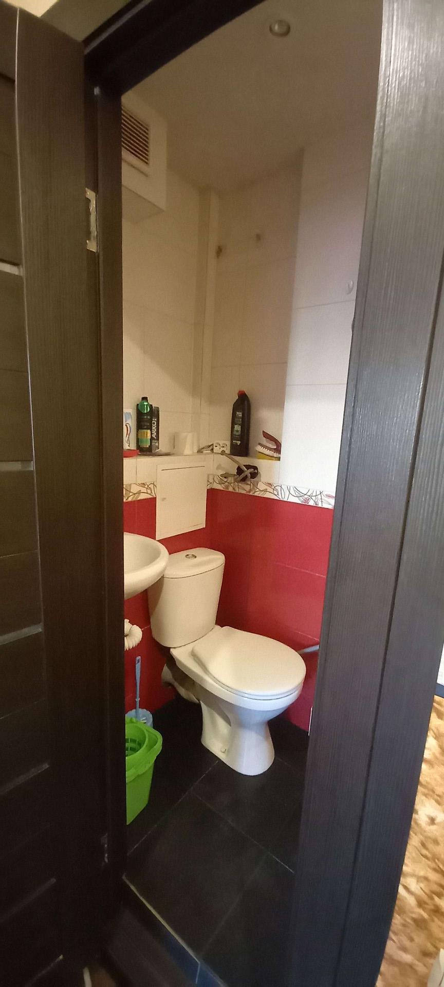 Новые двери, новая проводка, подвесной потолок, совмещённый санузел весь в кафеле, но есть где приложить руки: подклеить обои на стене и поставить бойлер (горячая вода не подключена) и можно жить с кайфом.