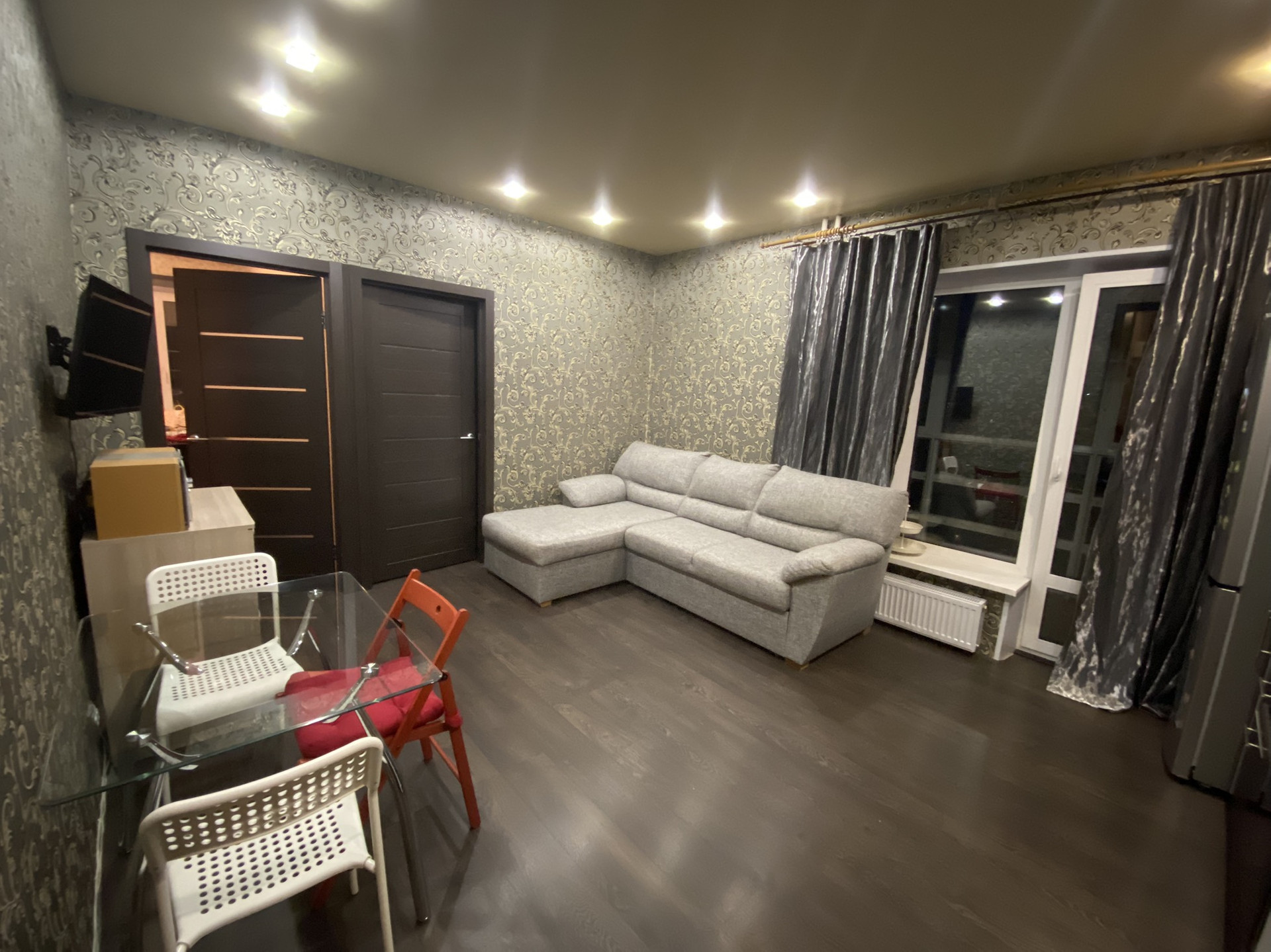 Евротрешка (кухня-гостиная, две отдельные комнаты). В квартире останется следующая крупная бытовая техника: в кухне индукционная варочная панель Samsung, духовой шкаф Bosch, посудомоечная машина gorenje, вытяжка krona, в ванной комнате стиральная машина hotpoint ariston. Останется большой диван (раскладывается в спальное место), встроенный шкаф-купе в прихожей.