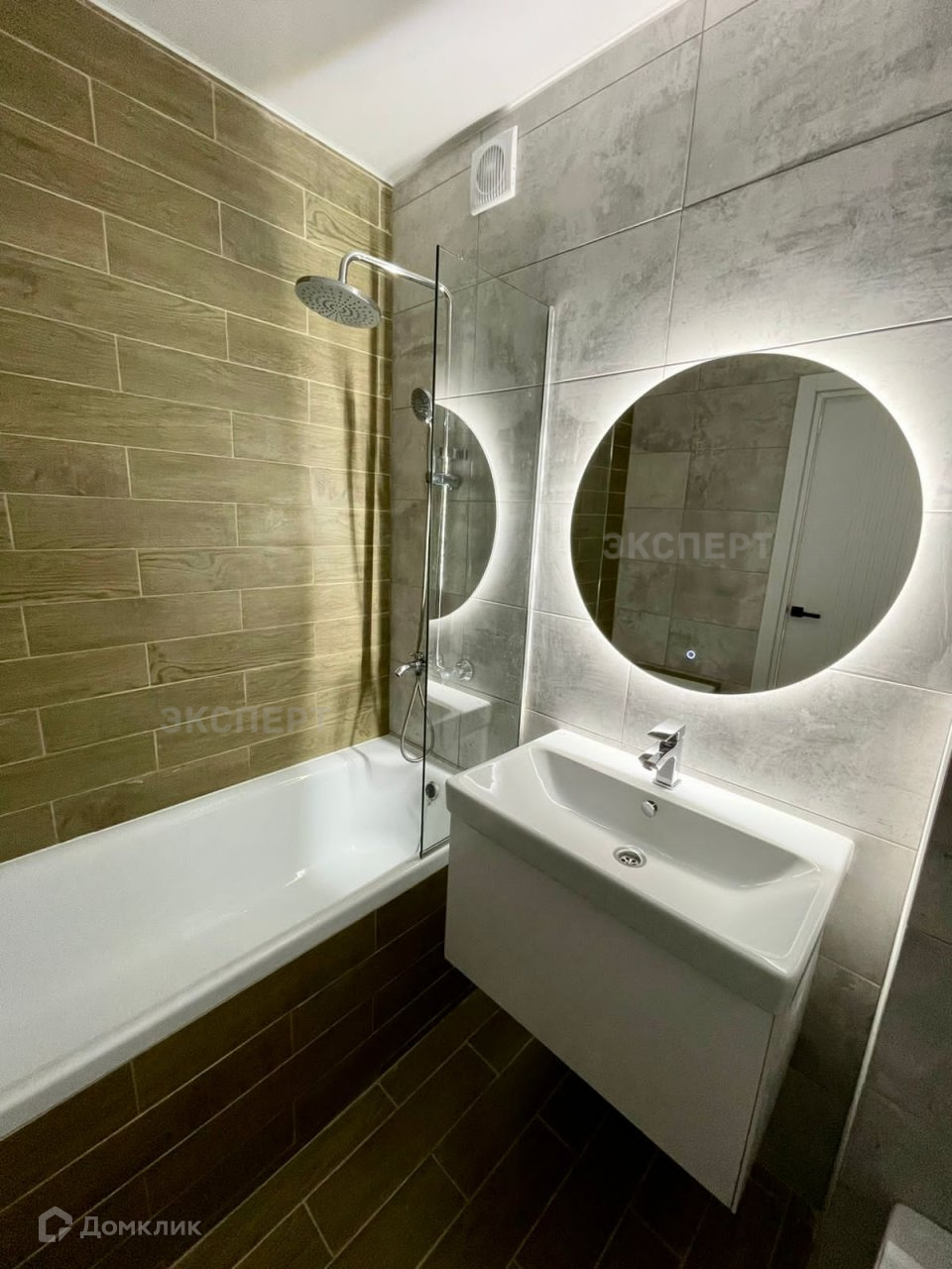 С/у совмещенный, керамогранит, тёплый пол.