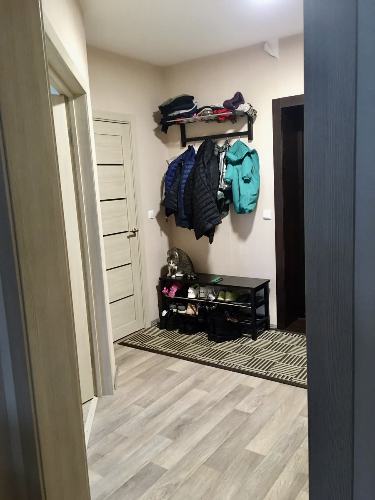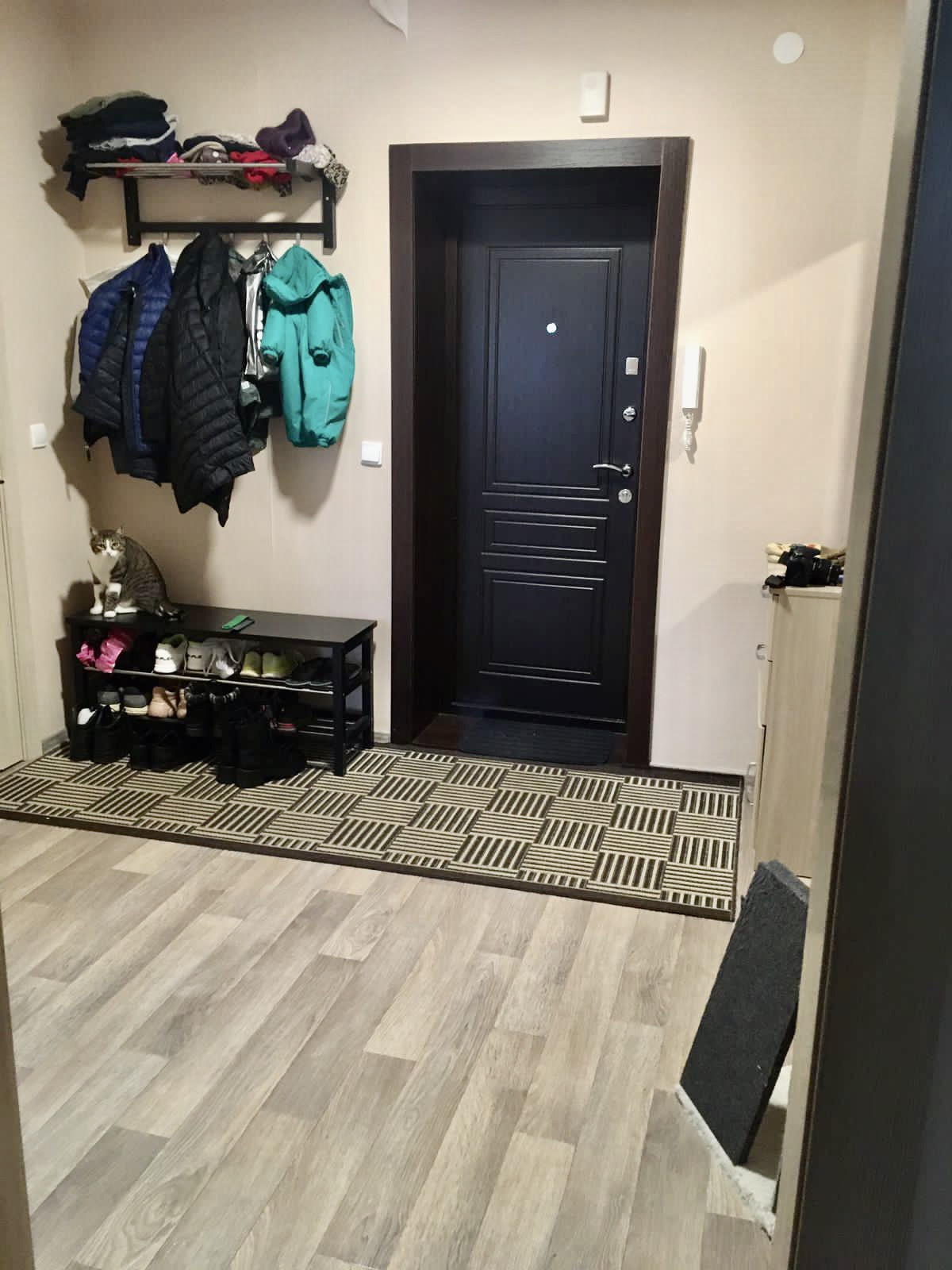 Тамбур на две квартиры, открывается магнитным ключом от подъезда, что очень удобно.