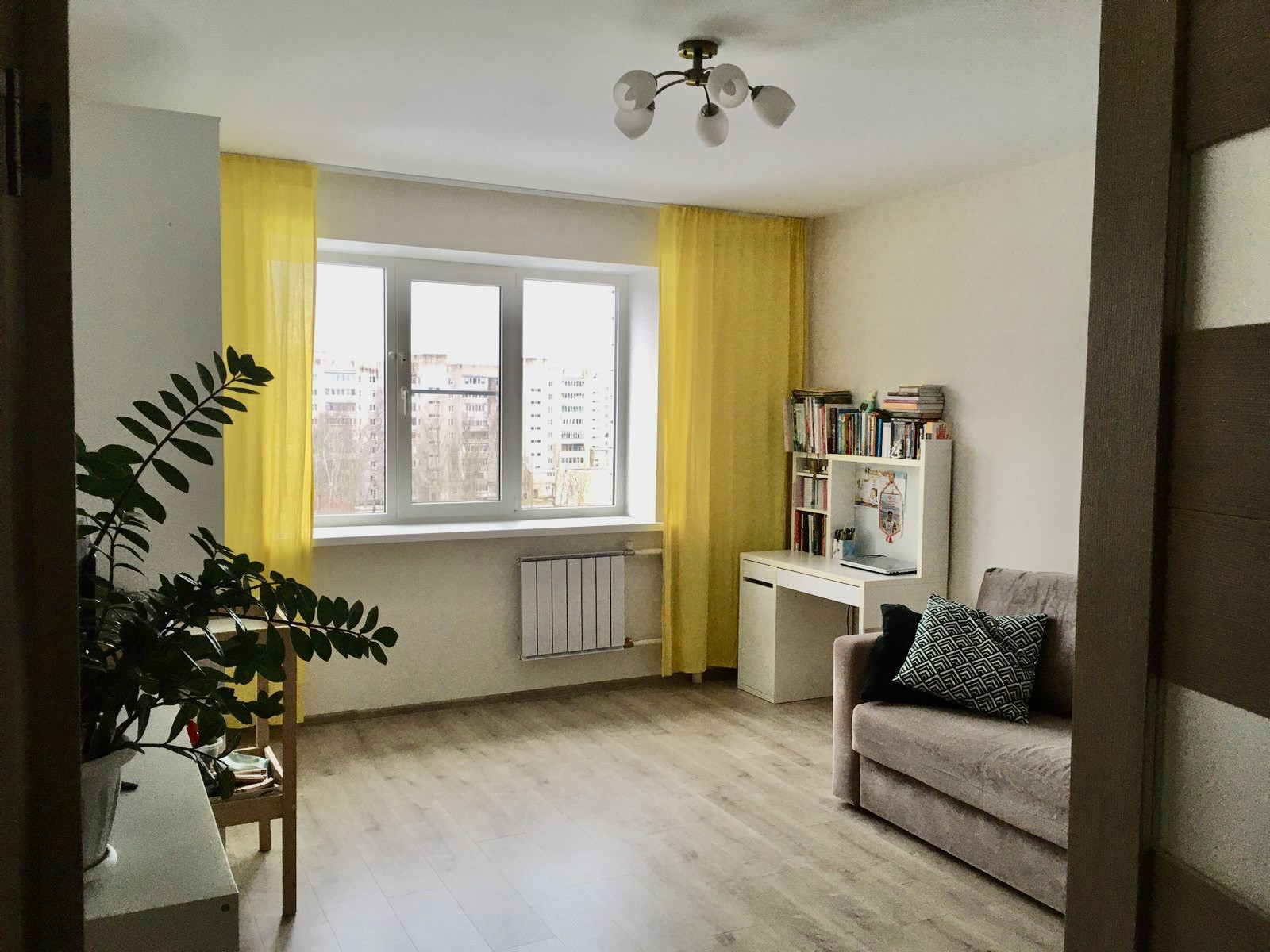 просторная прихожая - 7,6 кв.м, большая комната - 19,8 кв.м, санузел раздельный - 3,4 и 1,6 кв.м , кладовая 1,4 кв.м, переделанная под небольшую гардеробную, застекленная лоджия 4,2 кв.м.