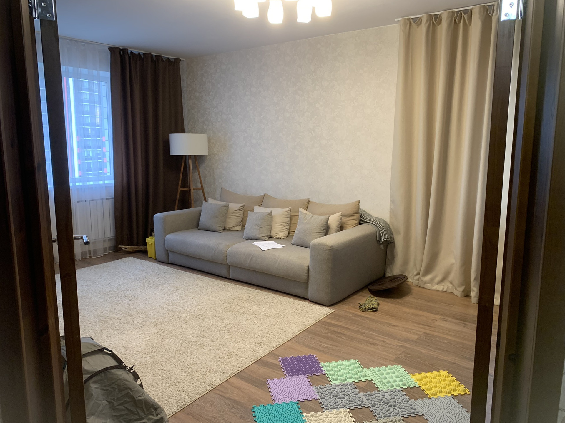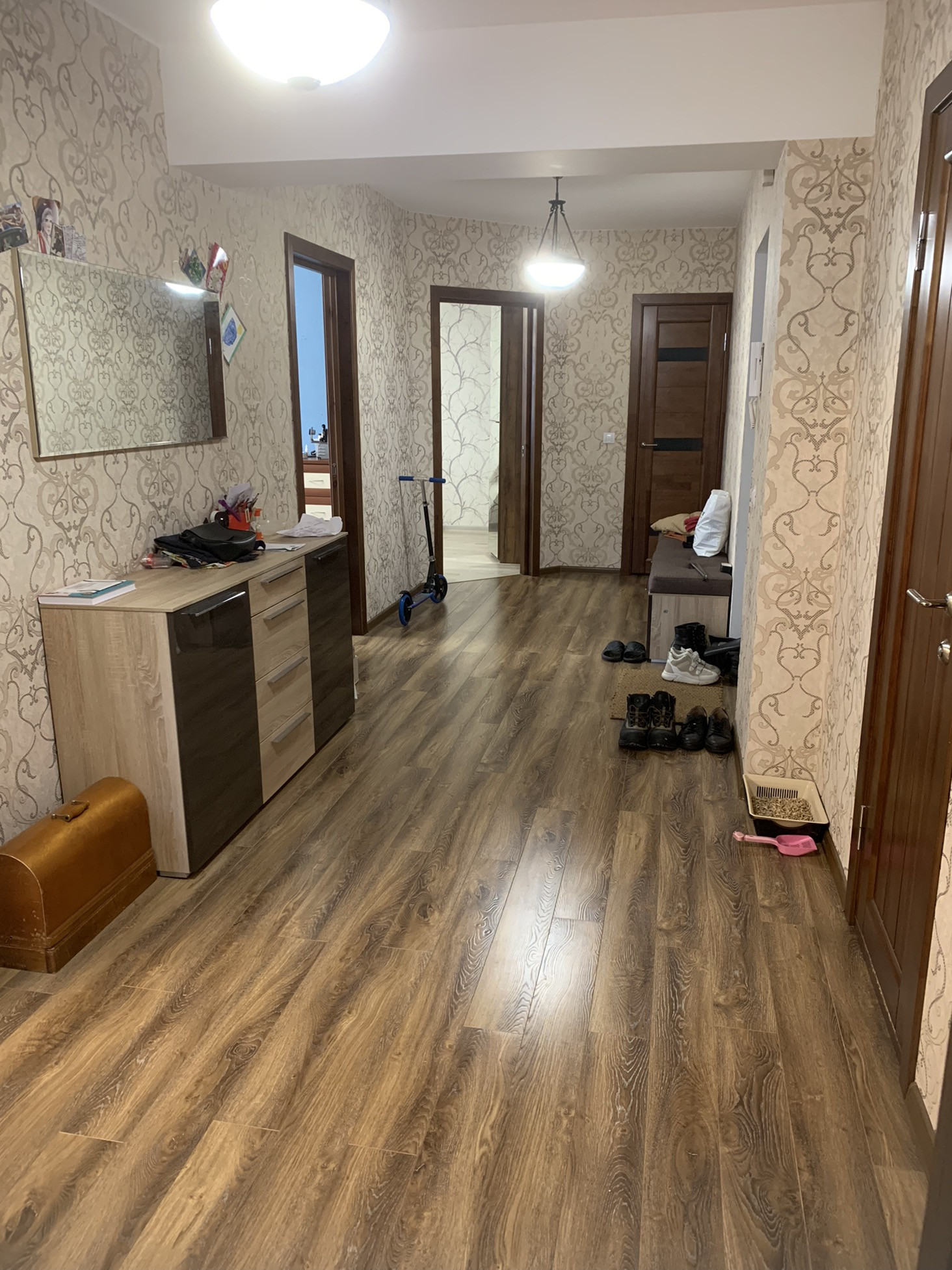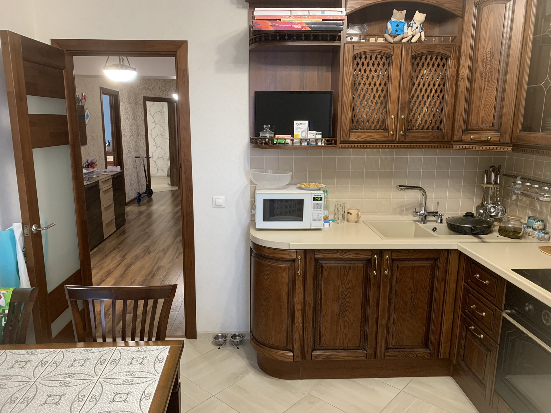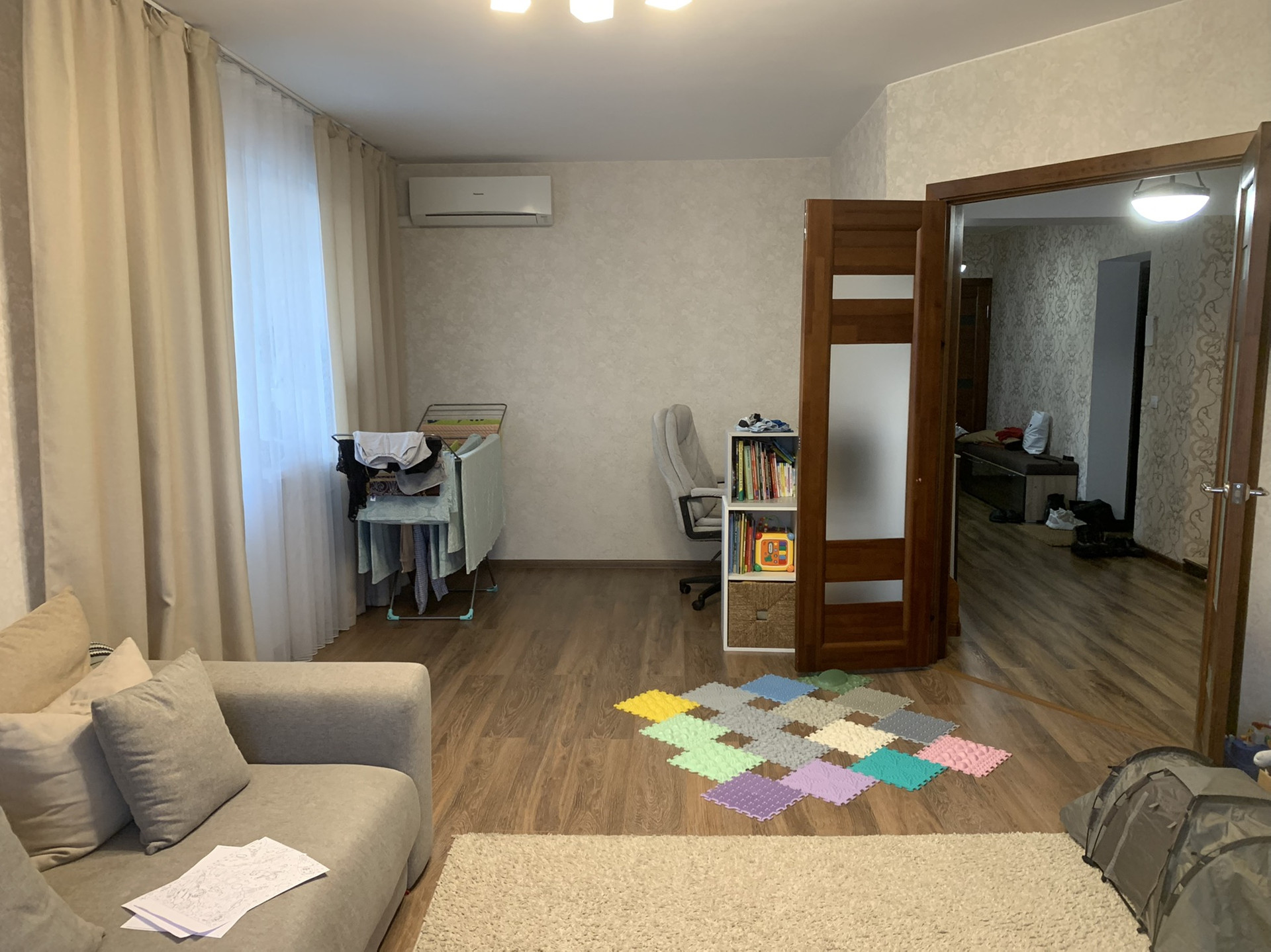 Трехкомнатная квартира в северном районе. В квартире отличный ремонт из качественных материалов, тёплые полы в детской, зале и прихожей, мощный кондиционер, которого хватает, чтобы охладить всю квартиру. Две застекленные отремонтированные лоджии. Мебель по договоренности можем оставить. Кухня деревянная, очень дорогая, хотим ее забрать. Если есть желание, можем оставить, но прибавив 500 тысяч к стоимости квартиры.