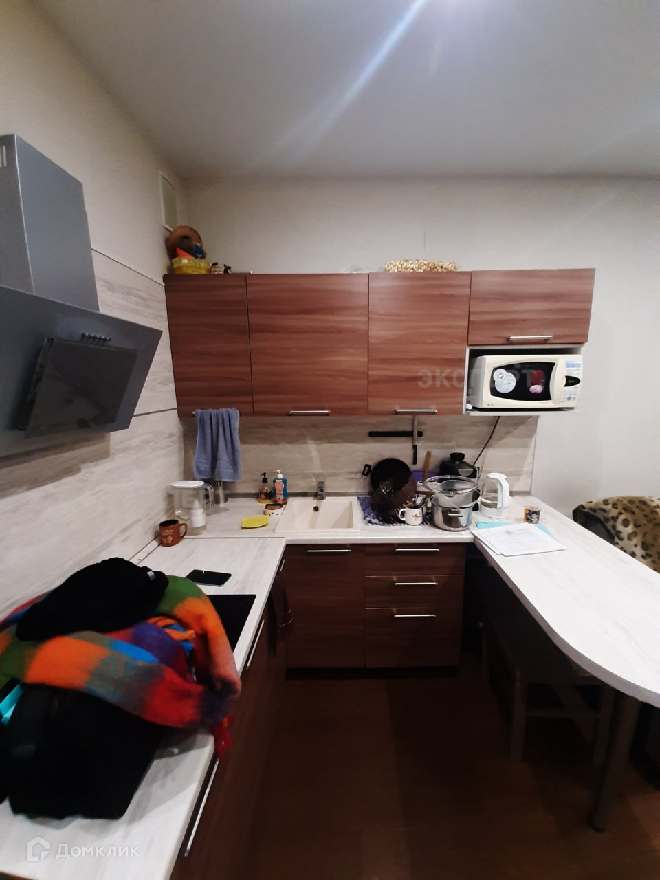 В квартире остаётся кухонный гарнитур и холодильник.