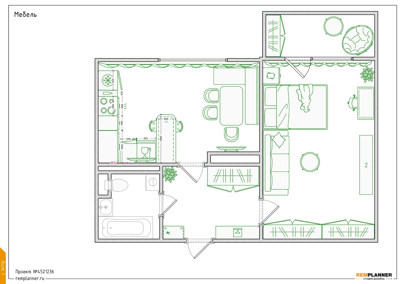 Количество комнат 1