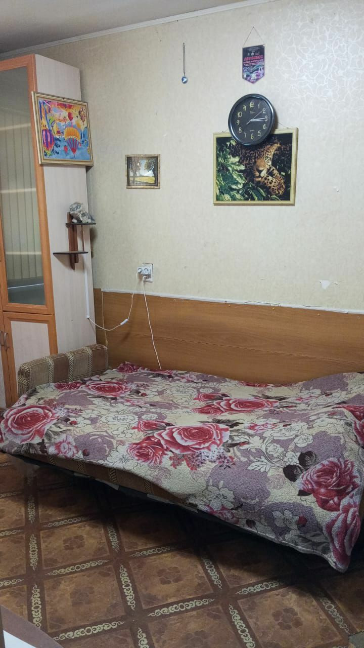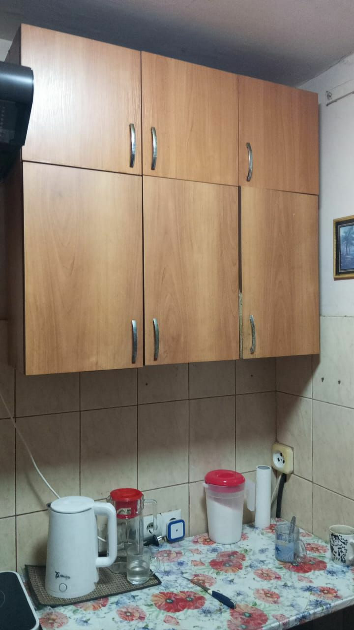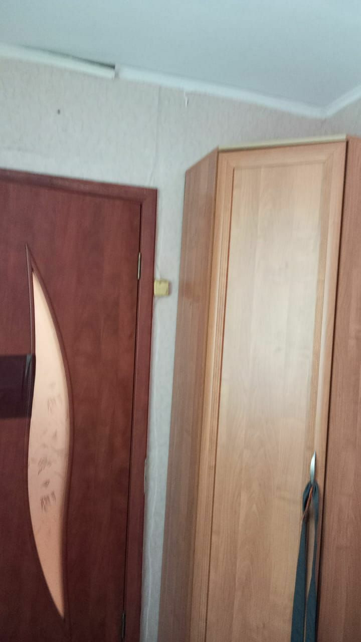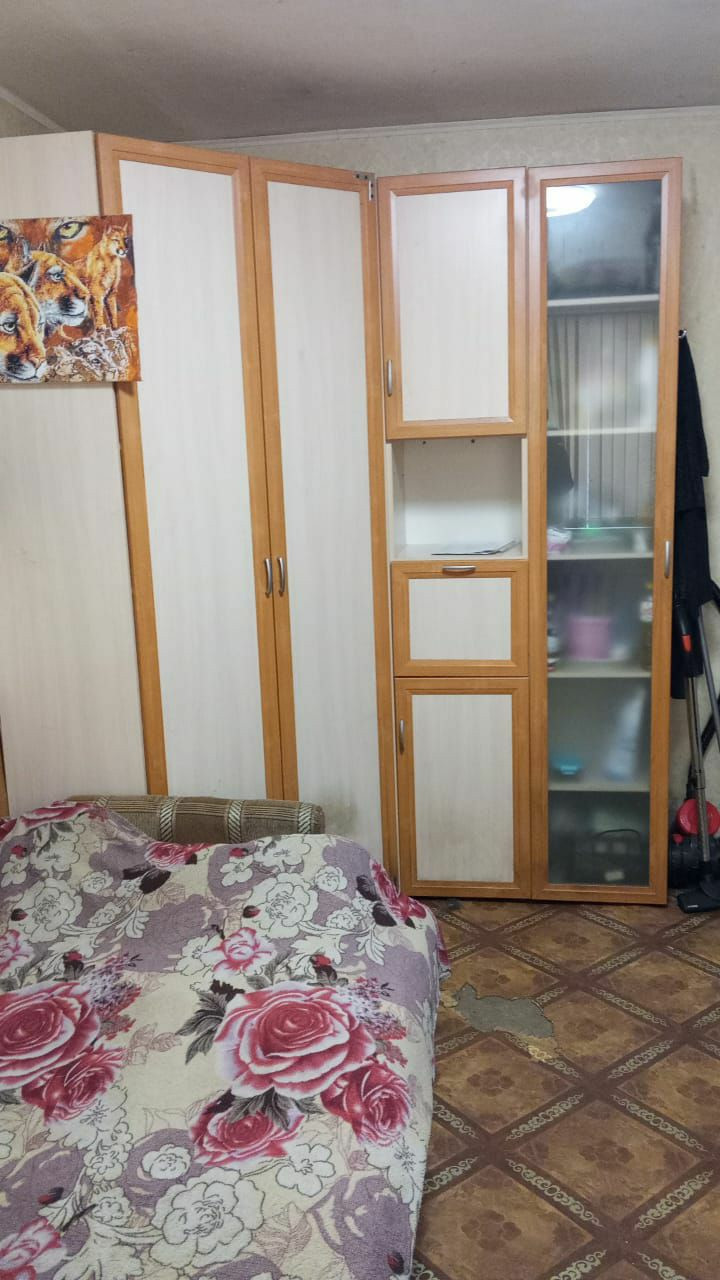 Встроенная мебель в комнате,угловой шкаф в маленькой комнате,прихожая. Санузел совмещенный,душевая кабина,бойлер на 50 литров.Нужен косметический ремонт.