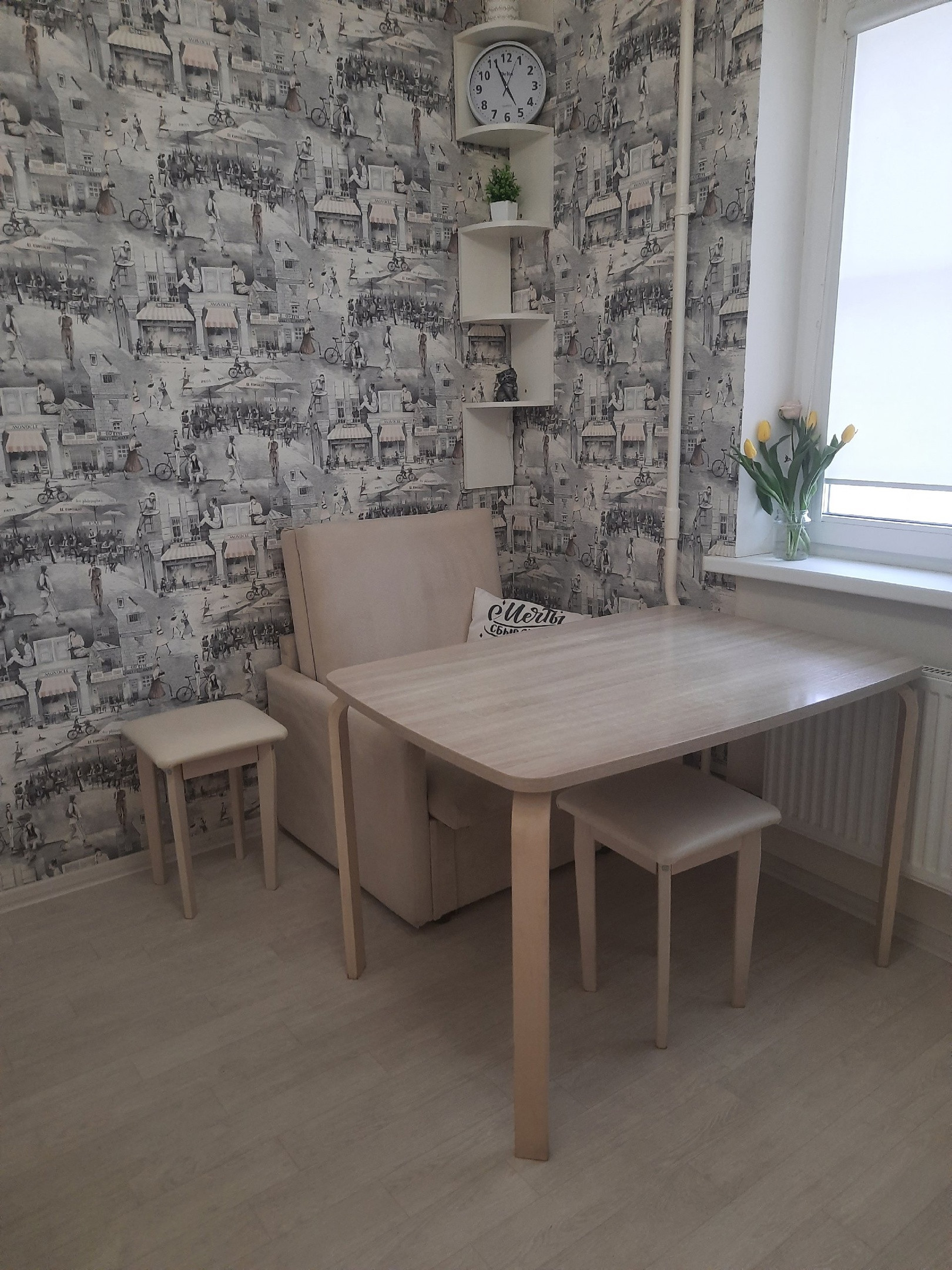 Из этой квартиры не хочется выходить, но иногда нам нужно ходить в сад и школу, оплачивать в банке квитанции, ходить в поликлинику, аптеку, рестораны или просто в магазин все это в изобилии находится в микрорайоне!!