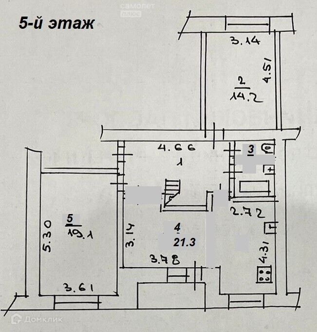 - совмещённый санузел - 4,9 м2