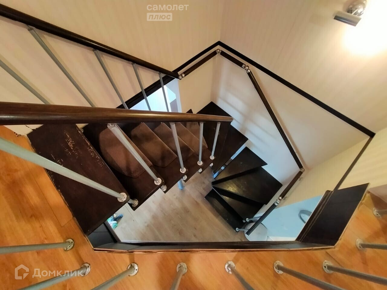Подъём на верхний этаж по металлической лестнице с деревянными ступенями. На каждом этаже свой санузел.