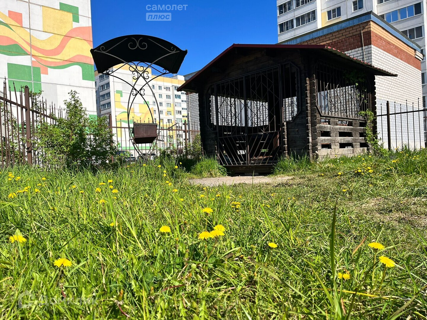 Во дворе и за его периметром большая стоянка для личного транспорта, есть детская площадка, зона отдыха и место для мангала или барбекю.