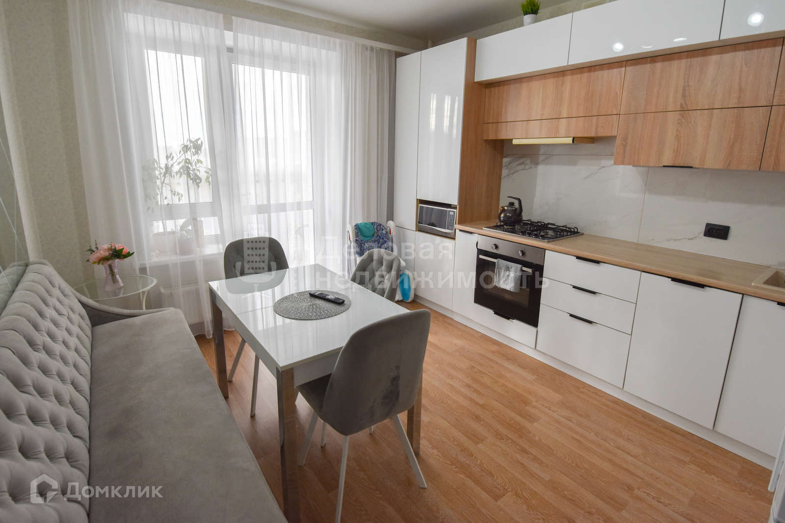 В квартире сделан качественный, современный ремонт. Остаётся встроенная кухня. Остальная мебель по договоренности.