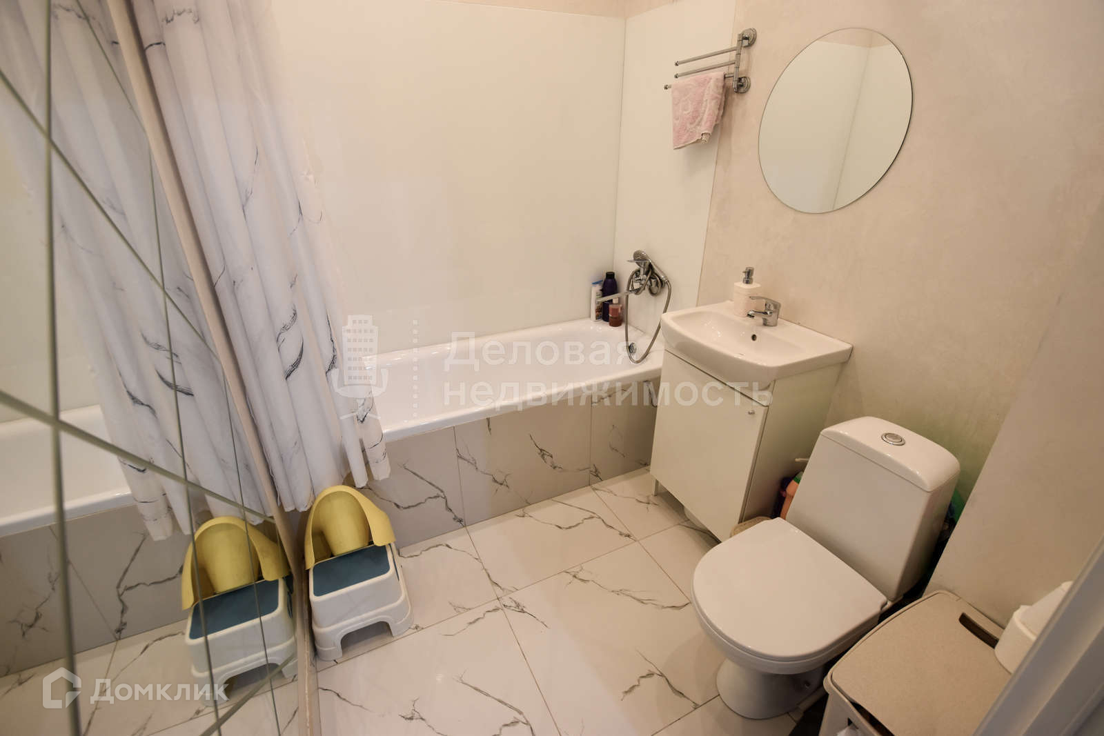 Натяжные потолки, ламинат, теплый пол в ванной.