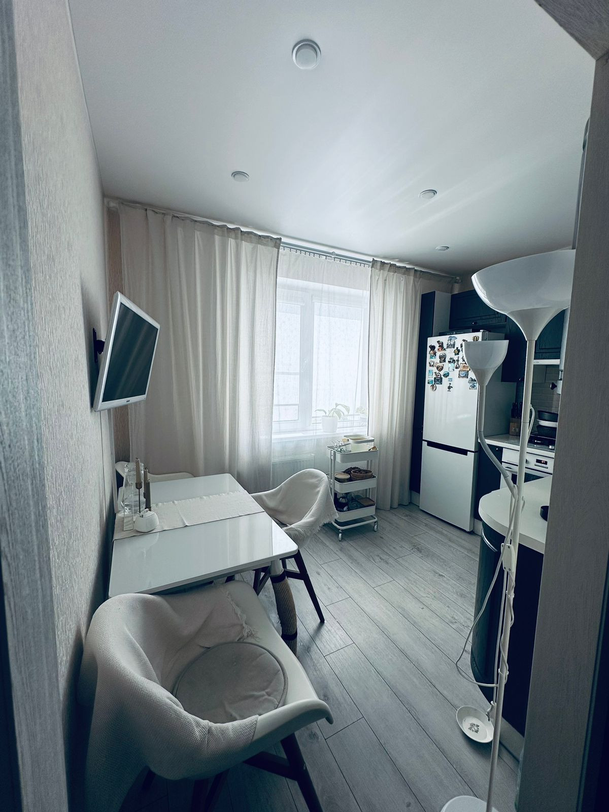 Вход на кухню выполнен в стиле портала ( нет двери )
