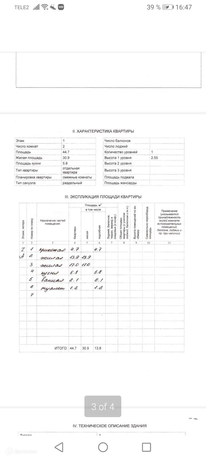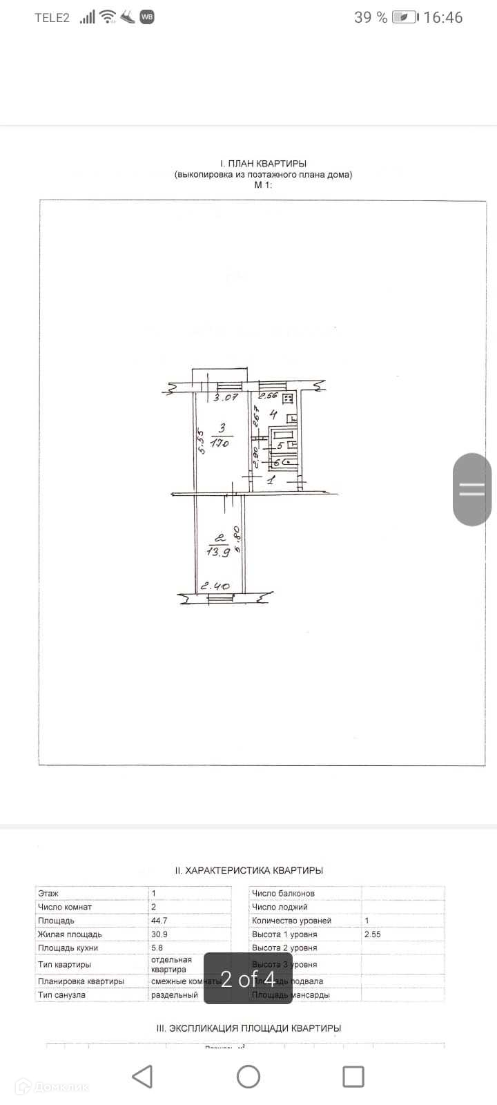 Квартира имеет общую площадь 44,7 кв.м и жилую 30,9 кв.м, из которых 17 и 13,9 кв.м занимают комнаты. Кухня 6,8 кв.м, санузел раздельный. Комнаты ориентированы на восток и запад, в каждой есть ниша для спальни или гардеробной. Установлены два стеклопакета. Дом в хорошем состоянии, управляющая компания надежная и ответственная. Подъезд чистый, двор зеленый, много мест для парковки.