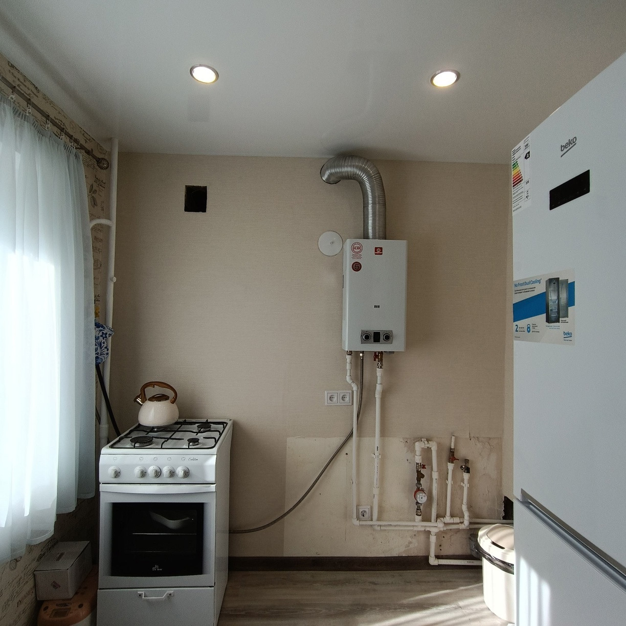 Квартира с современным качественным ремонтом. Заменена электропроводка, полностью перебраны и заменены полы, выравнены стены, все трубы новые, радиаторы новые биметаллические, новое газовое оборудование.