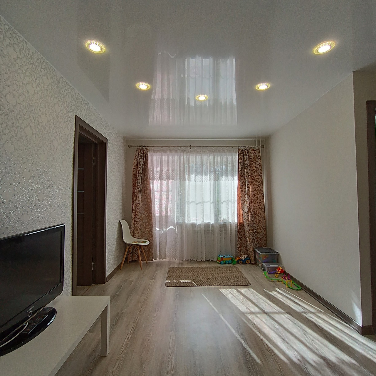 Окна стеклопакеты, полы ламинат, натяжные потолки по всей квартире, отличная качественная входная дверь, санузел в современном кафеле, сантехника в отличном состоянии, акриловая ванна.