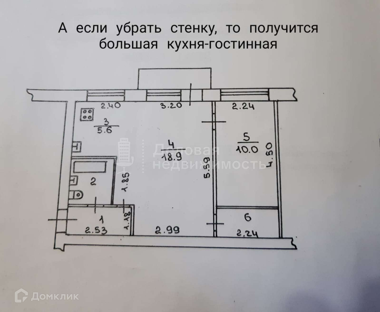 Требуется косметический ремонт . Можно круто перепланировать помещение, убрав стенку между кухней и комнатой. Эта стена не несущая. Получится большая кухня-гостинная. Среди фотографий представлен план возможной перепланировки.