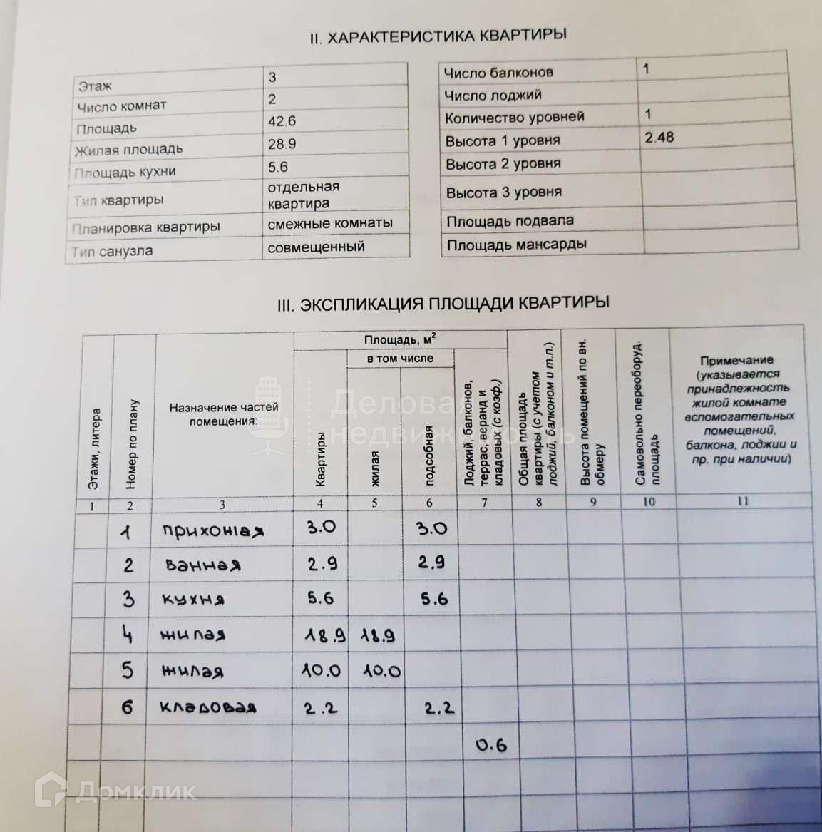 Общая площадь 42.6 м2