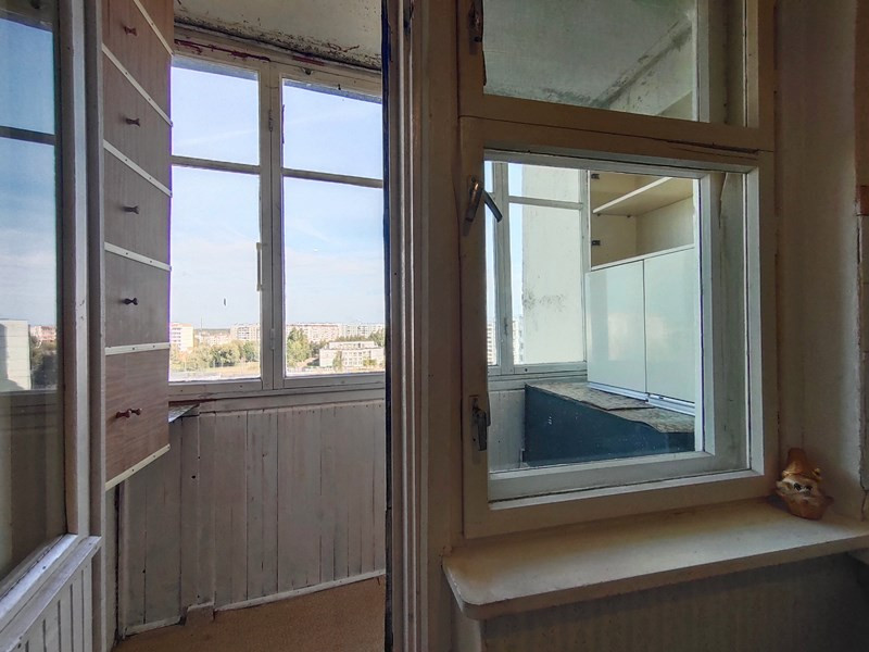 О квартире. Трёхкомнатная. На 9 этаже 10-этажного панельного дома. Площадь  квартиры 63,4 кв.м. Все комнаты изолированные. Площадь комнат 17,3 кв.м +11,5 кв.м + 10,4 кв.м. Площадь кухни 8,6 кв.м. Раздельный санузел. Есть кладовая. Две лоджии 2,6 кв.м (на кухне) и 5 кв.м (в комнате). Прихожая 10,6 кв.м. Высота потолков 2,6 м. Окна квартиры ориентированы на юго-восток и на северо-запад. С одной стороны из окна вид на детскую площадку, с другой – на две школы, малоэтажную застройку деревни Григорово.